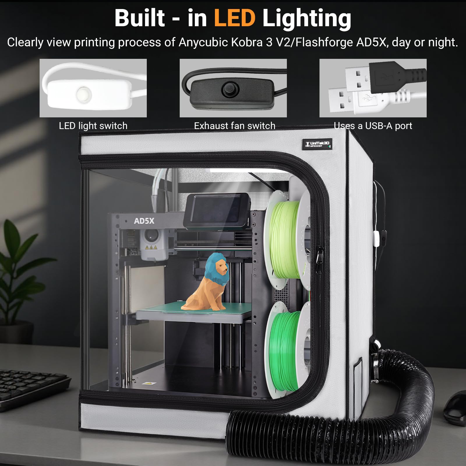 - Enhanced Visibility: Built-in LED lighting allows for easy monitoring of prints.