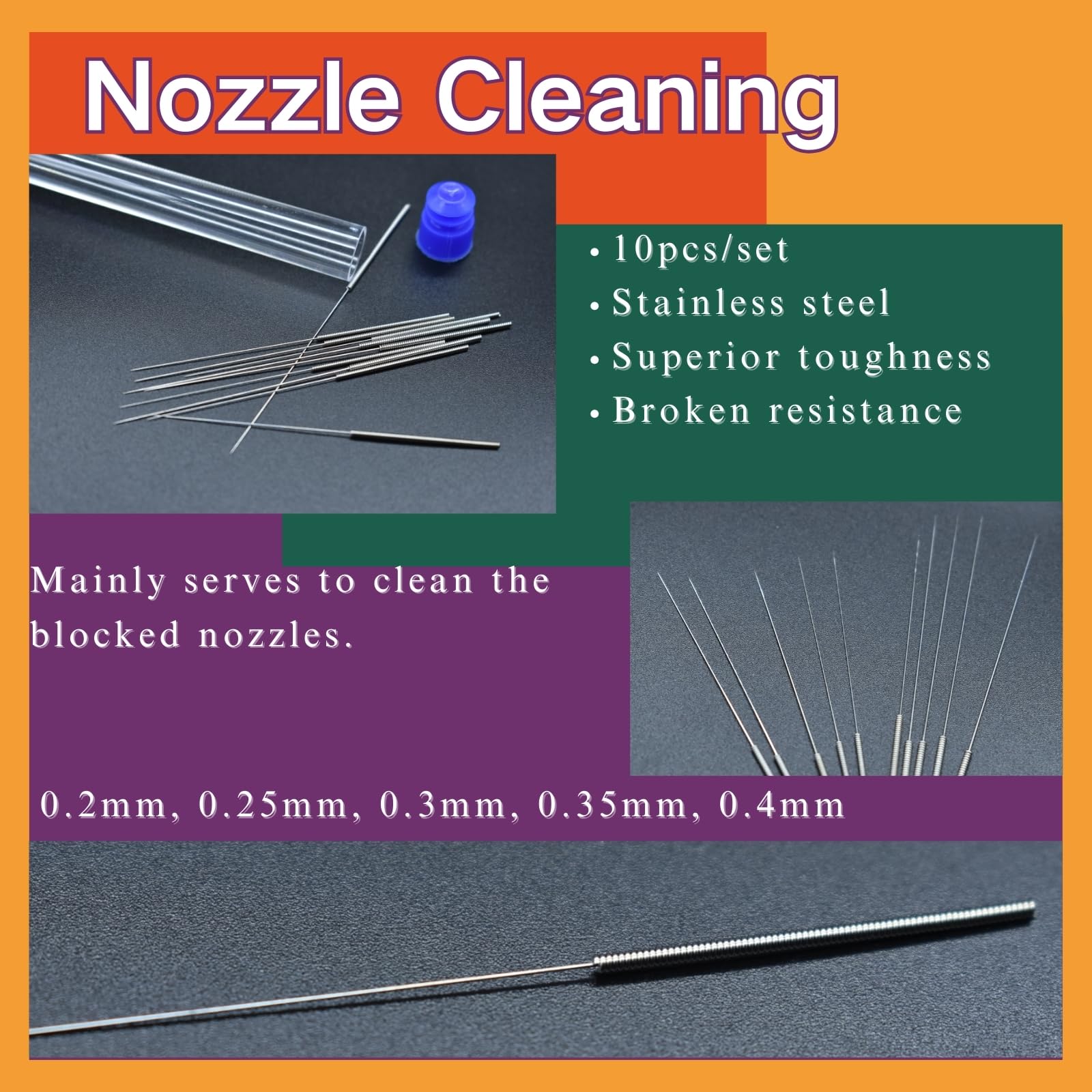 - Includes various nozzle cleaning needles that improve print quality.