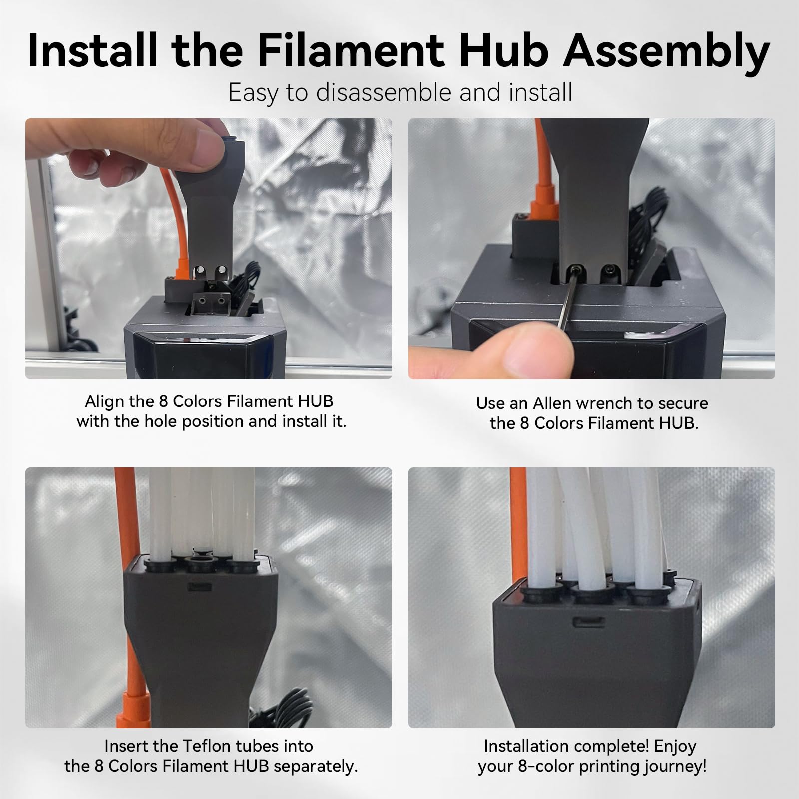 Plug-and-Play Installation: Setting up the hub is straightforward — simply align it with the printer, secure it with an Allen spanner, and insert the PTFE tubes. This user-friendly approach means you can get started quickly without extensive setup or technical knowledge.