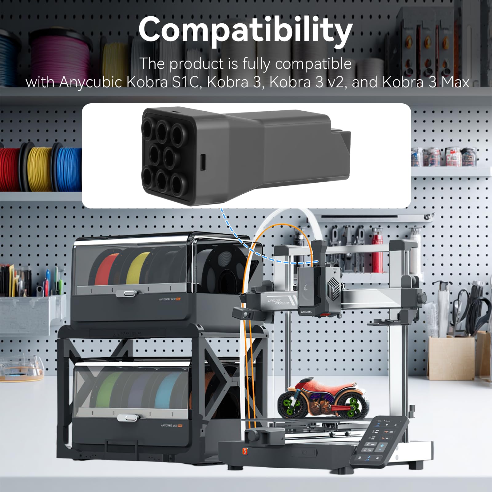 Compatibility: The 8 Colors Filament Hub is designed specifically for Anycubic Kobra 3, Kobra 3 V2 ACE Pro, Kobra S1 ACE Pro, and Kobra 3 Max Combo printers. This tailored fit ensures that users can expect optimal performance without compatibility concerns.