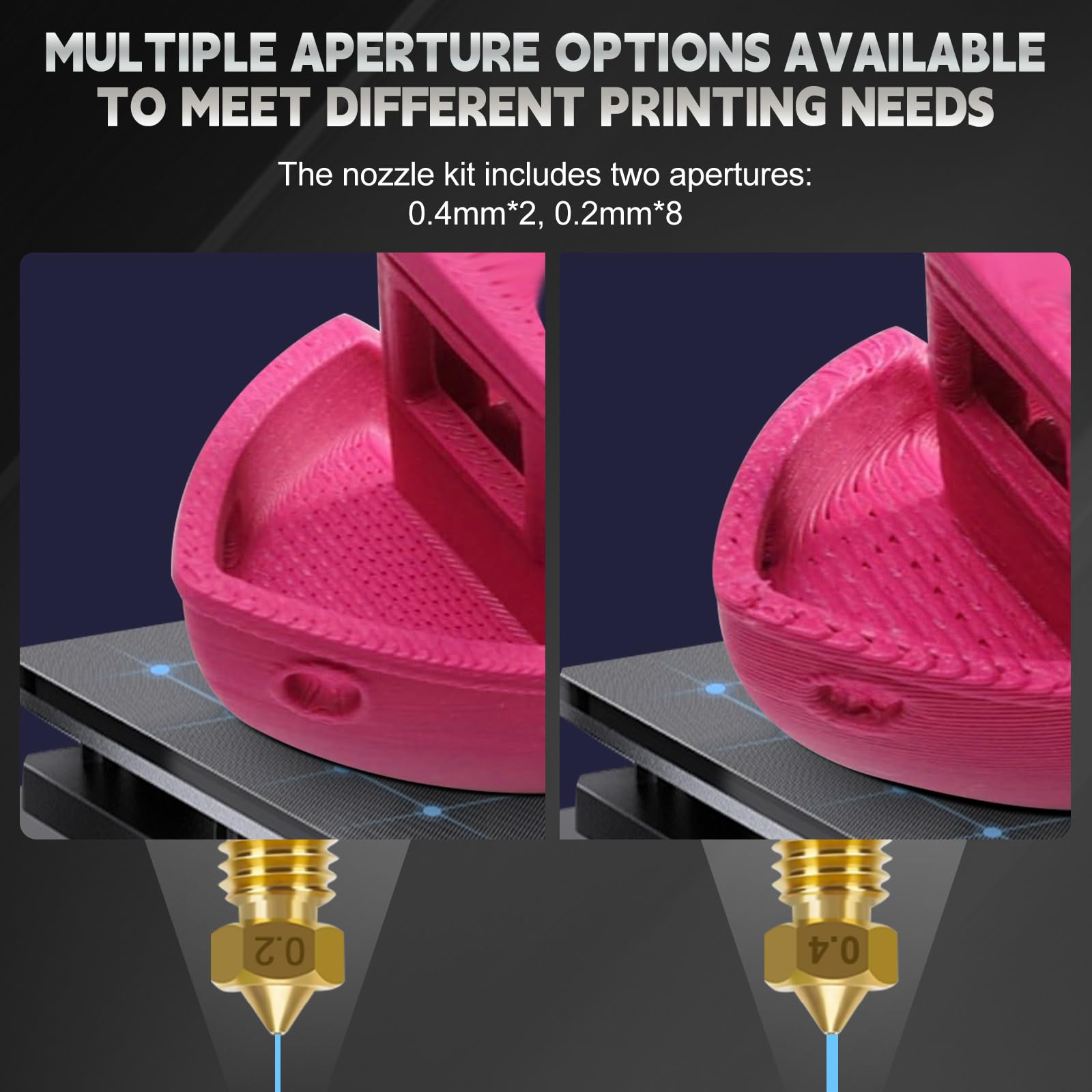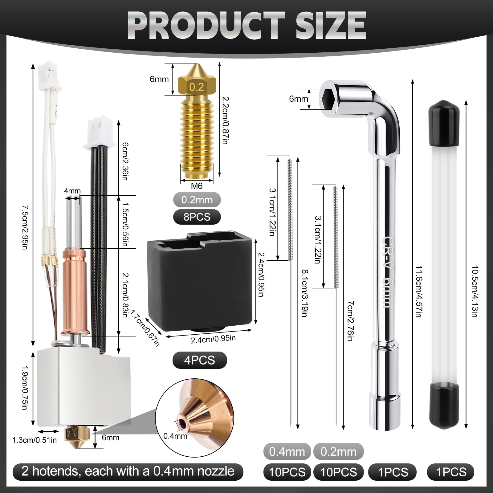 This hotend is specifically designed for Anycubic's Kobra 3 series, ensuring compatibility and a smooth installation process. The pre-configured kit promotes a plug-and-play setup, which is a massive plus for those who want to minimize downtime. Its precision-made parts significantly reduce clogging issues, allowing for a better surface finish and higher-quality prints. The inclusion of multiple nozzle sizes (including eight 0.2mm brass nozzles) allows users to explore different print resolutions without needing to purchase additional accessories.