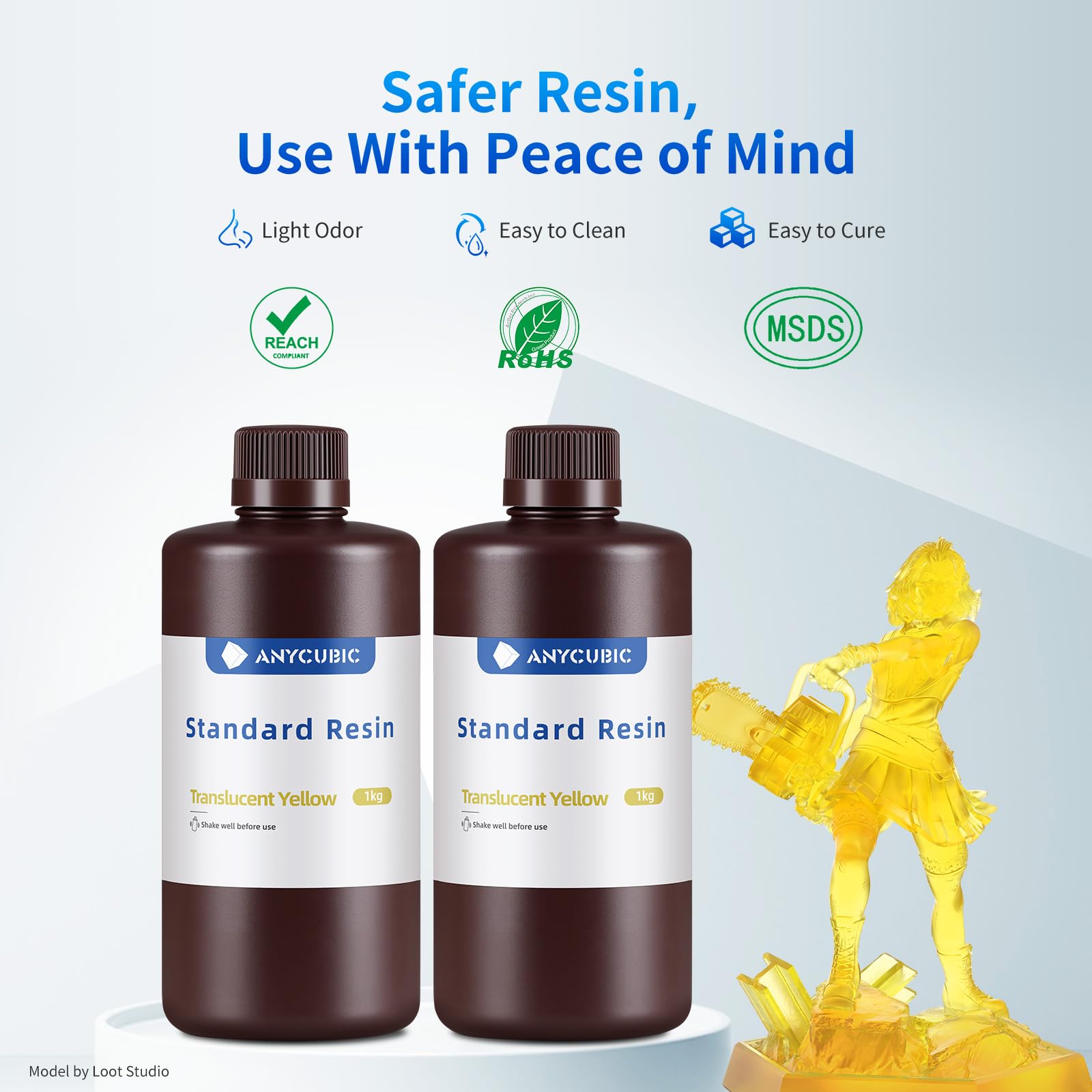 The ANYCUBIC Standard 3D Printer Resin is highly recommended for those looking to produce vibrant and high-quality prints at a reasonable price. Ideal for experienced users and those with LCD printers, it may not suit complete beginners who are unfamiliar with safety protocols for handling resin.