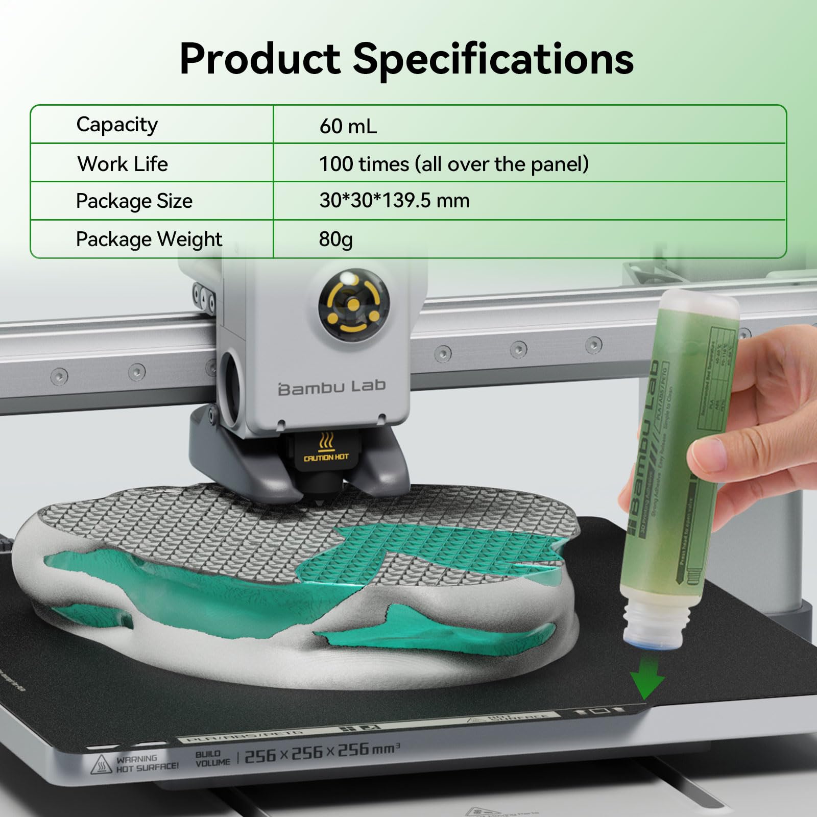Upon opening the 60ml bottle, the first thing you notice is its user-friendly design, which allows for easy application. Unlike solid adhesives, this liquid form spreads evenly, ensuring a consistent layer on your build plate. The lower odour and environmentally friendly ingredients are also a plus, making it more pleasant to use in enclosed spaces.