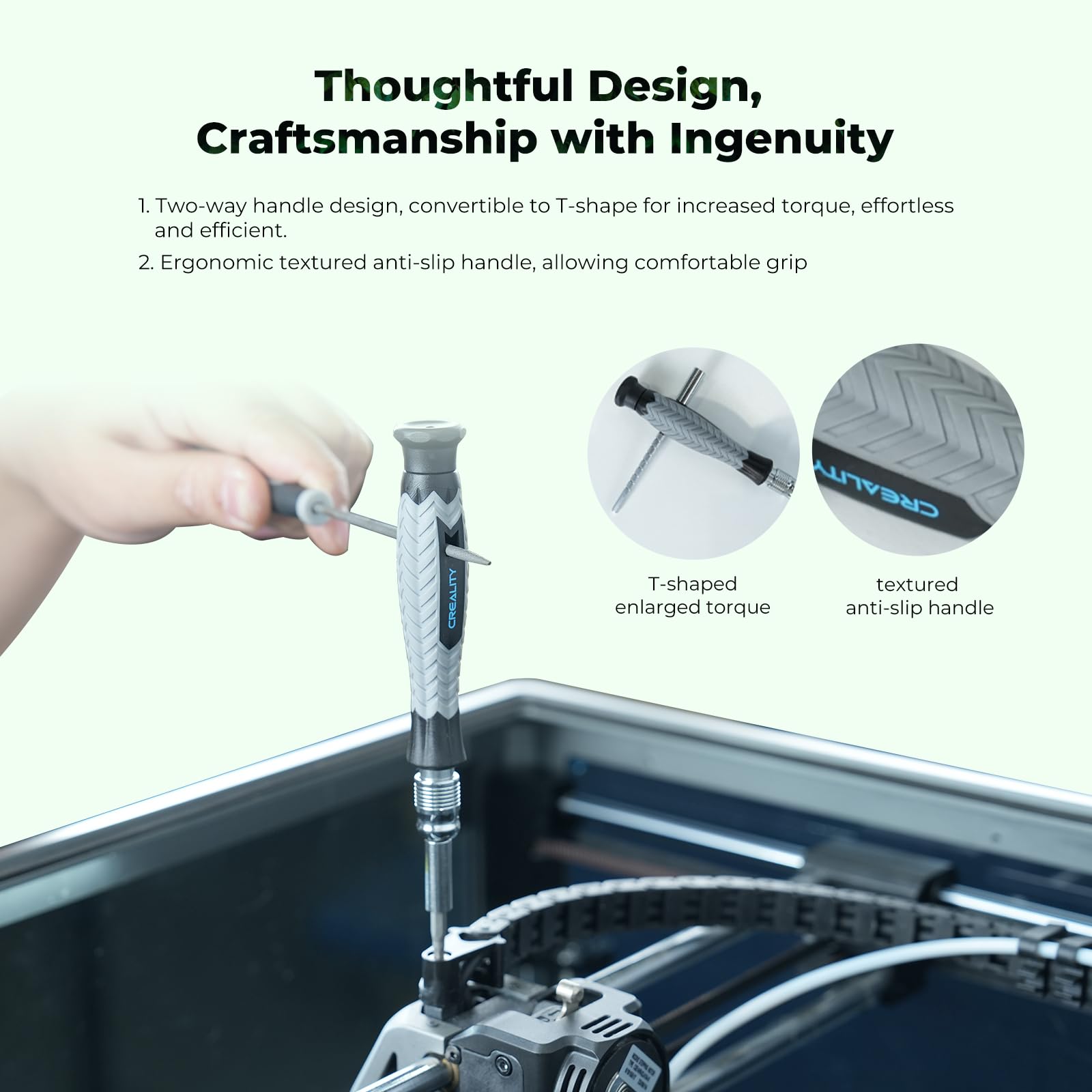 Right out of the box, the Creality Tool Kit impresses with its extensive range of tools. The thoughtful packaging and organisation of the kit make it easy to navigate, with each tool readily accessible. The ergonomic design of many tools, especially the multi-functional screwdriver set, promises comfort during extended use.