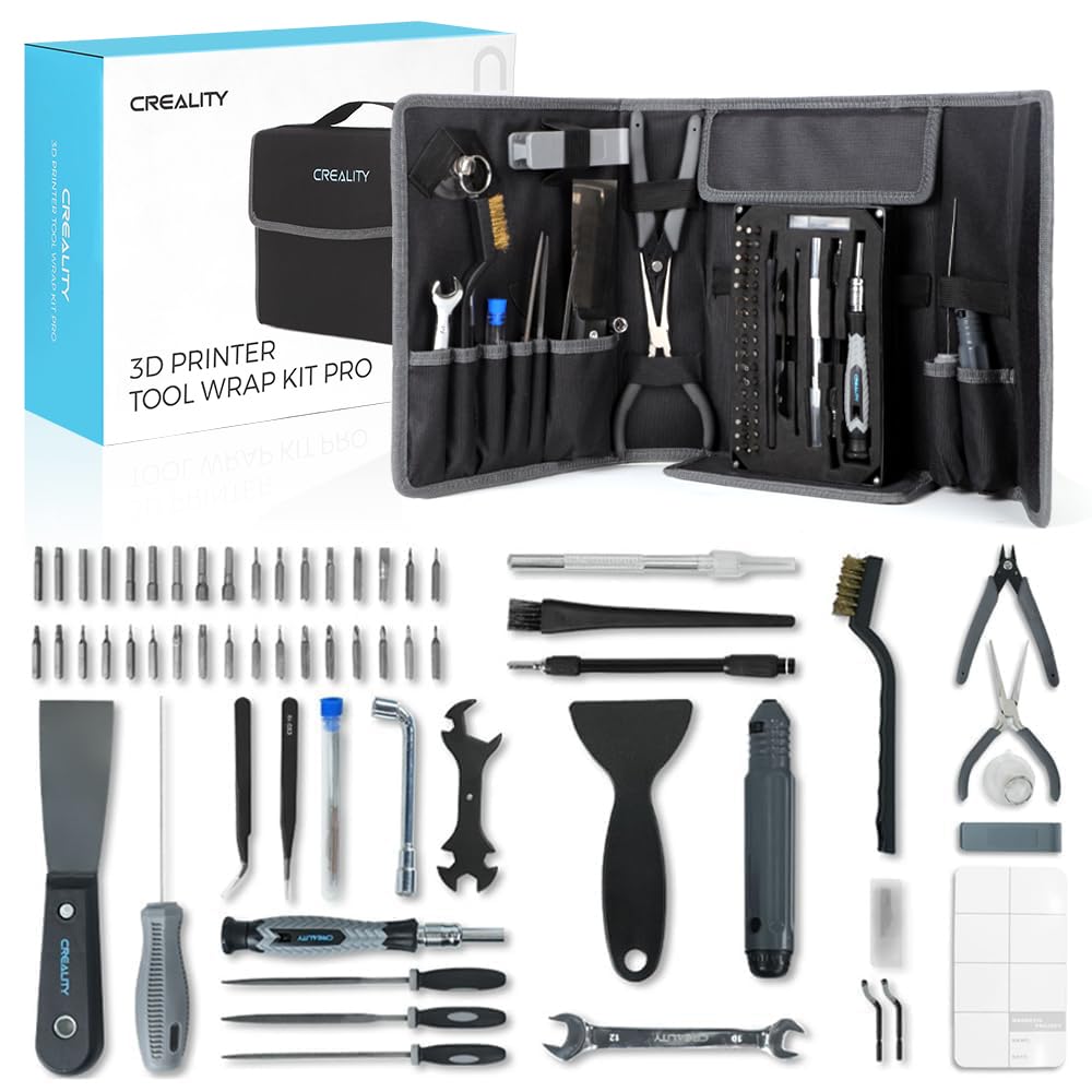 The Creality toolkit includes essential tools for various stages of 3D printing, such as model processing, nozzle cleaning, and removal/installation tasks. With 75 pieces, it covers everything from needle files and deburring tools to a multifunctional screwdriver set containing 34 chrome vanadium steel bits. This variety is crucial for fine-tuning your prints and maintaining your 3D printer.