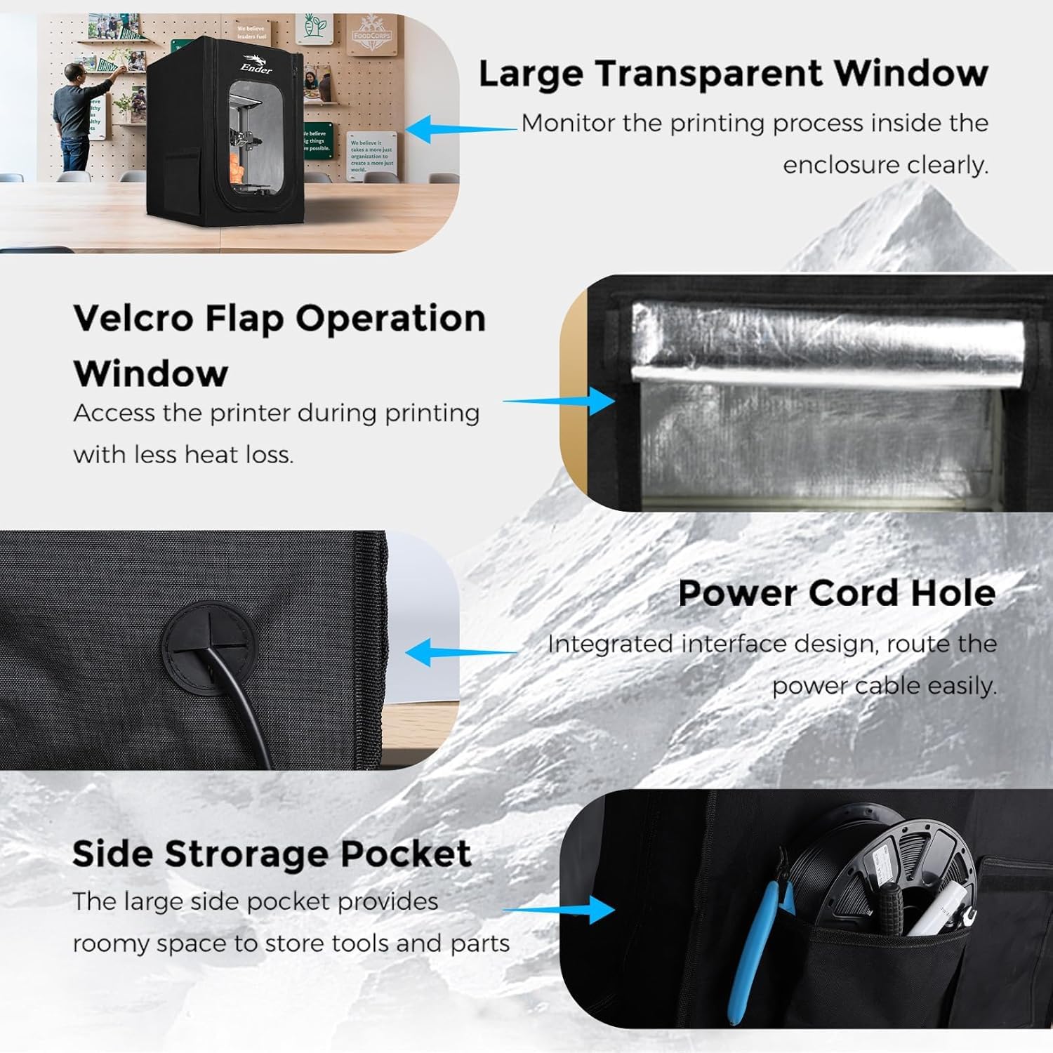 This enclosure is perfect for dedicated 3D printing enthusiasts who want to improve print quality and reduce noise in their workspace. Ideal for those using materials sensitive to temperature, such as ABS or PETG, it offers significant advantages. However, casual users or those without temperature-sensitive materials may find it less essential.