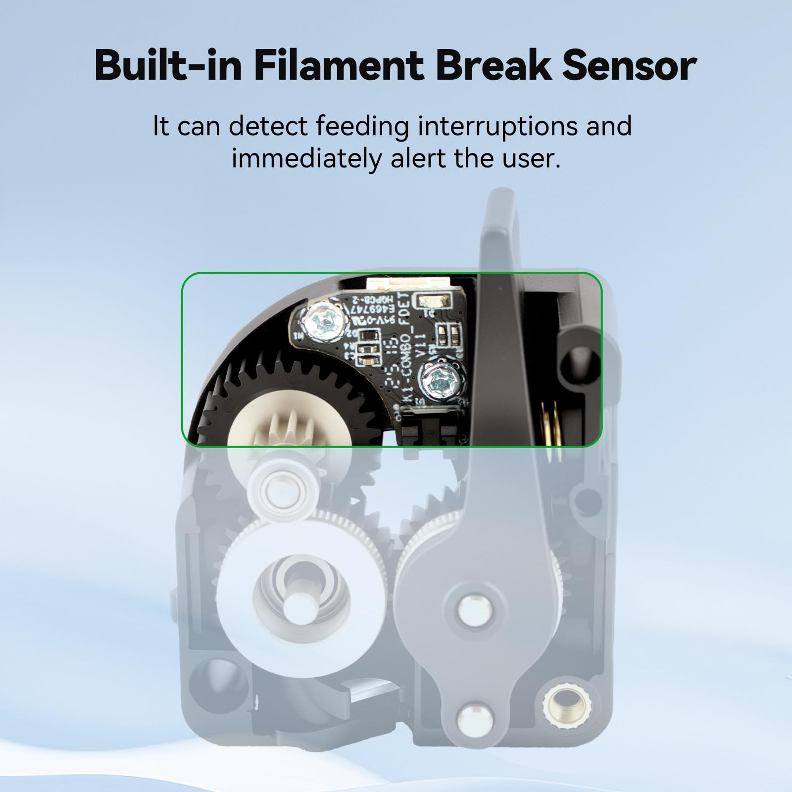 Built-in Filament Break Sensor: The advanced zero-distance detection mechanism effectively identifies filament breaks, enhancing reliability during long prints—a feature that can save both time and material.