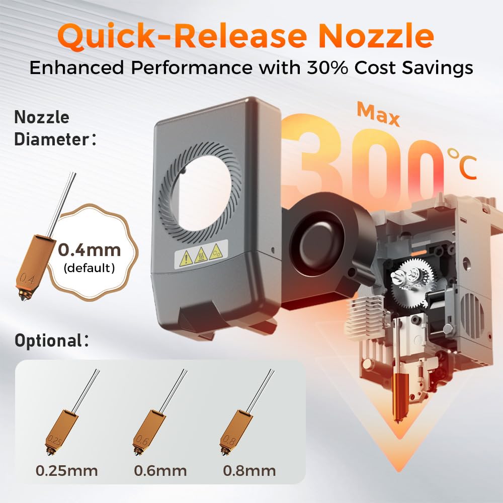 - High-temperature nozzle (up to 300°C) allows compatibility with a wide range of filaments.