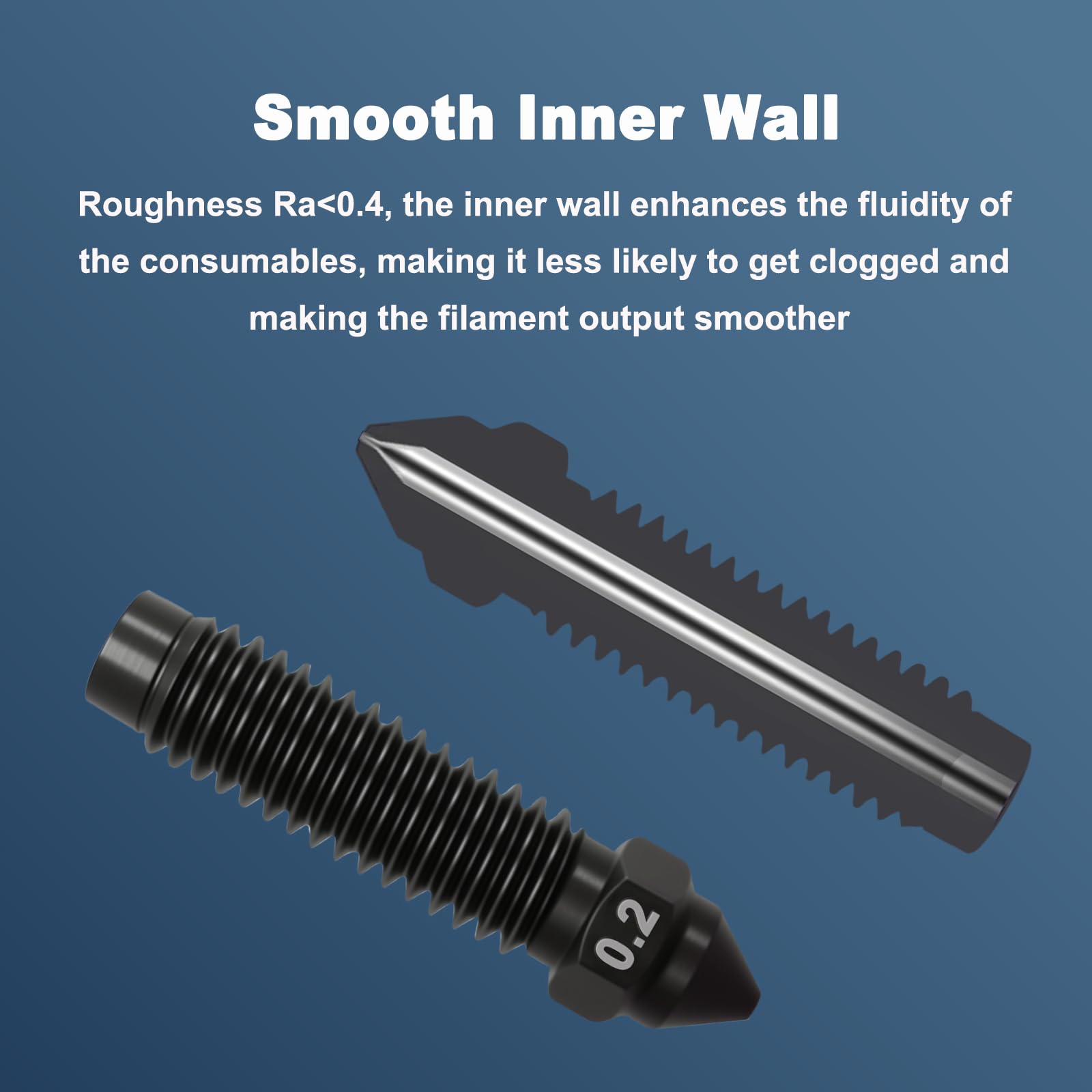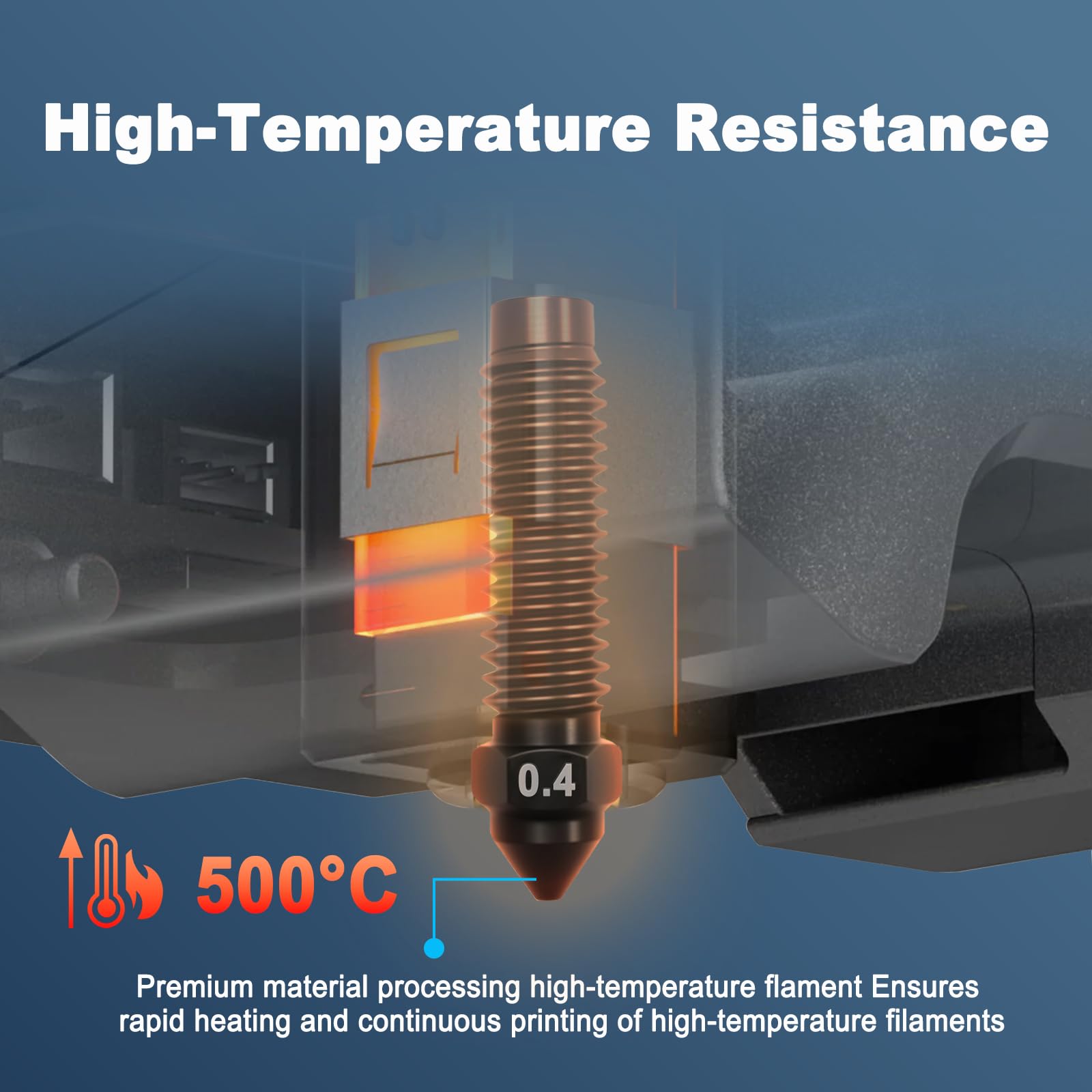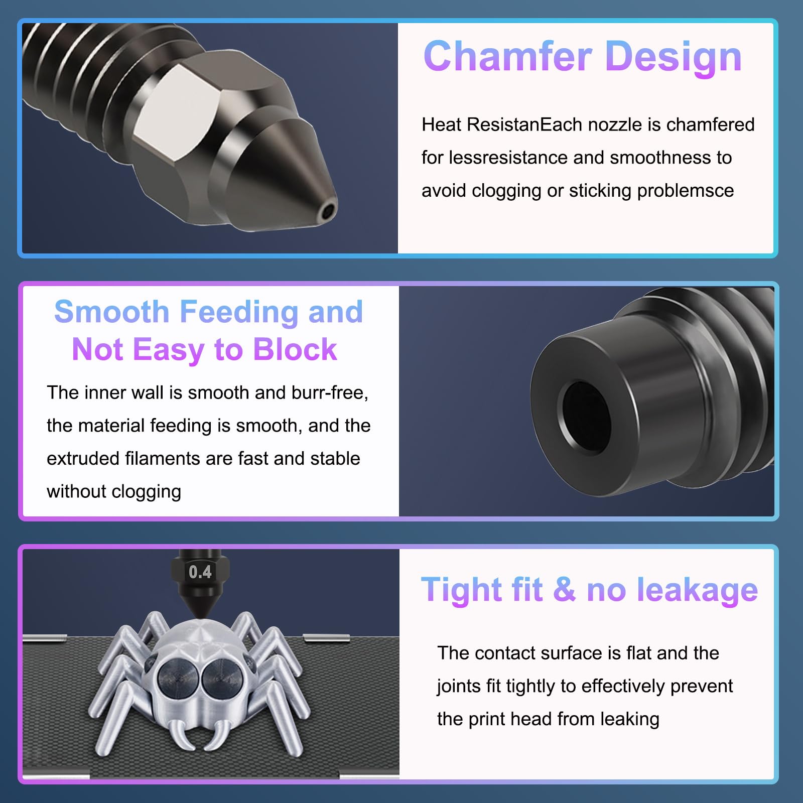 One of the most impressive aspects of these nozzles is their fluidity in material flow. The meticulously designed flow profile guarantees consistent extrusion rates, which is crucial for achieving high-quality prints. Additionally, with a maximum temperature resistance of 500°C, they are suitable for printing a wide range of filaments, including high-temperature materials, which opens up exciting possibilities for more advanced projects.