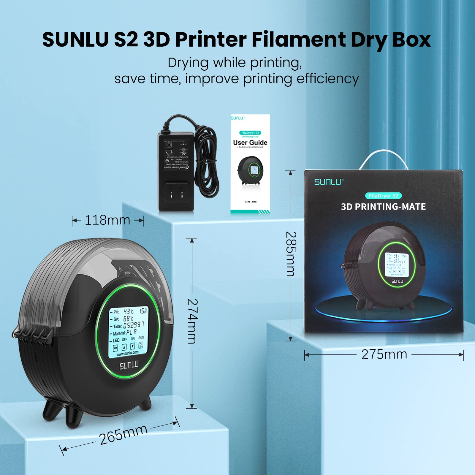 ![[SUNLU Official] Upgraded Filament Dryer Box S2, Filament Dehydrator with 360° All-Round Heating, Storage Box for 3D Printer Filaments, Keep Filament Dry During Print, Filament Holder, Black](https://m.media-amazon.com/images/I/71pS7jz3FXL.jpg)