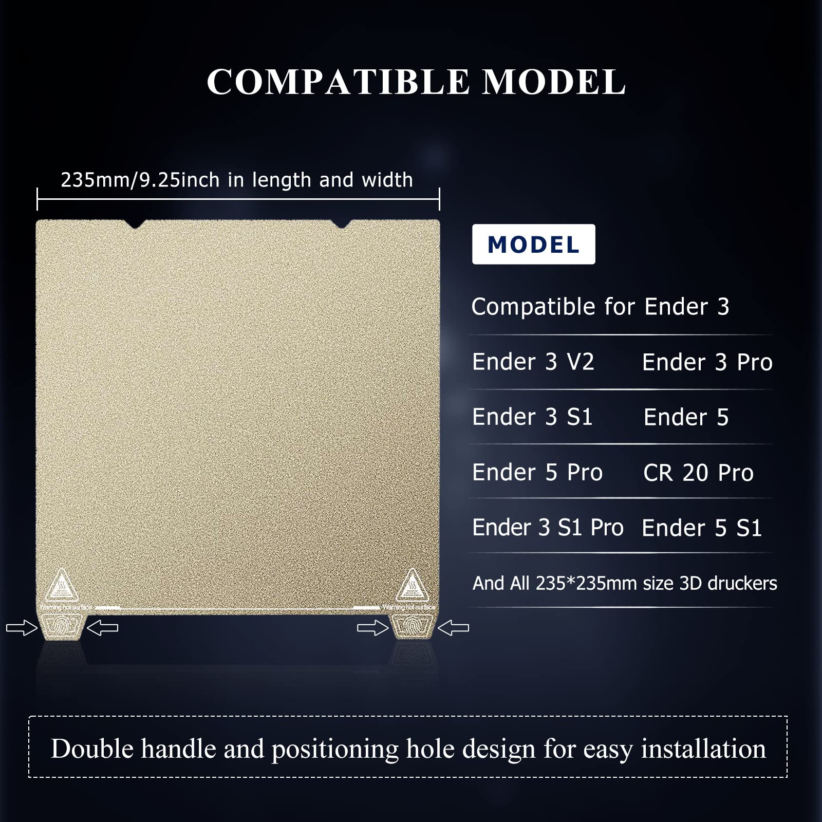 While primarily designed for the Ender 3 series, this sheet may fit other printers with the same bed dimensions, but compatibility should be checked first.