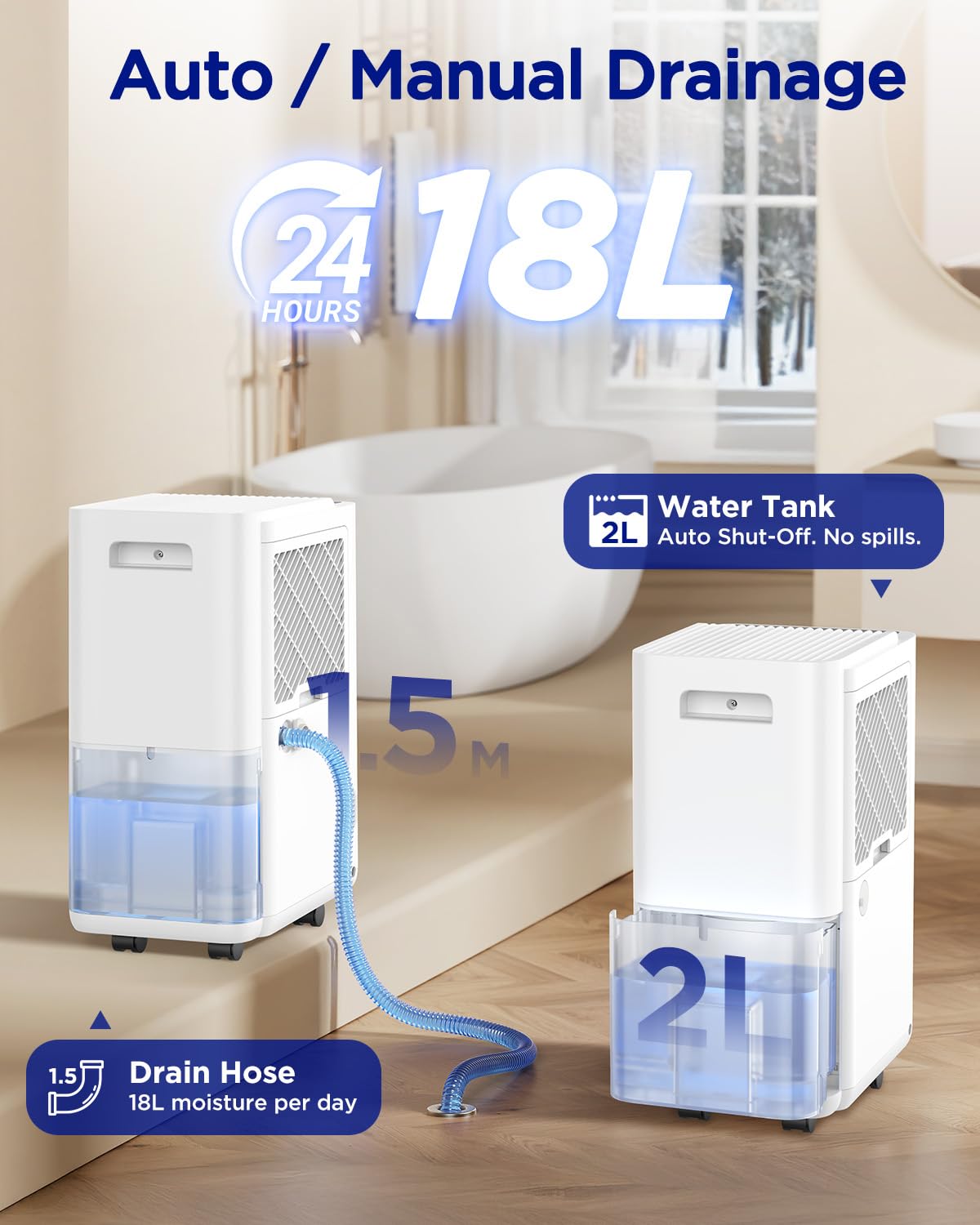 Moreover, the 24-hour timer and multiple operation modes (including laundry mode) enhance its versatility. The continuous drainage option is a significant advantage for users who require constant moisture removal, as it eliminates the need for regular tank emptying.