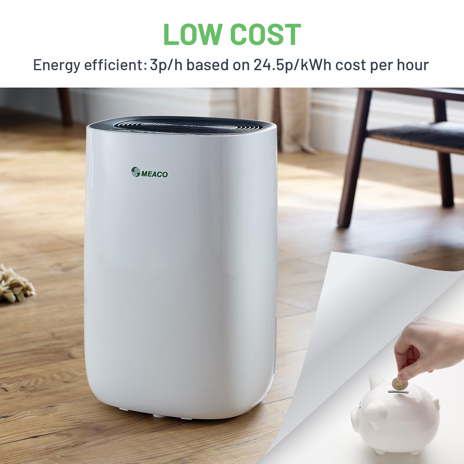 The core appeal is straightforward: it’s an electric compressor dehumidifier designed to remove condensation and damp while helping prevent mould. For UK homes, that matters most in autumn and winter, when colder walls, drying washing indoors, and reduced ventilation can push humidity up quickly. Meaco also positions it as a cost-of-living-friendly appliance, highlighting low power consumption and optimised energy usage. That makes it especially relevant if you’re running it in a bedroom, hallway, kitchen, conservatory, bathroom, or a smaller living space.