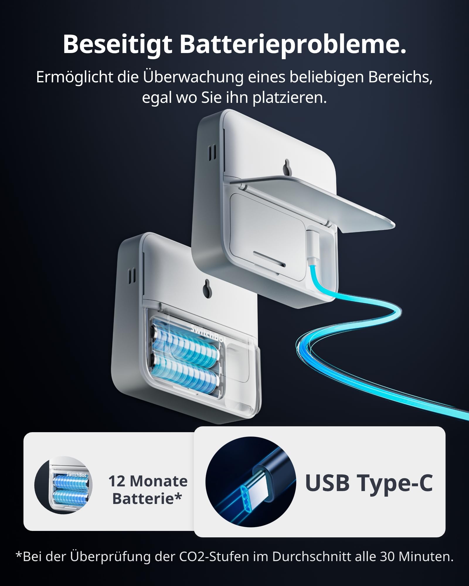 The SwitchBot employs high-precision NDIR Swiss industrial-grade sensors, which measure CO2 levels every second for accurate readings.
