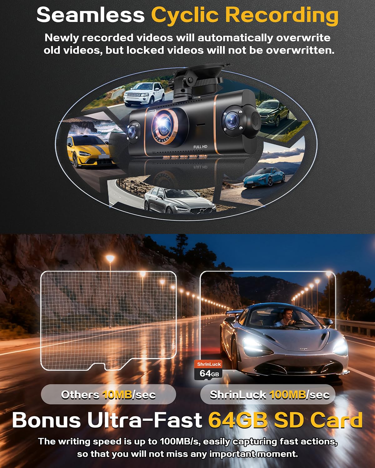 Dash Cam Front and Rear with 32GB SD Card 1080P FHD Dashcam for Car Dual Dashboard Camera with Night Vision,Loop Recording,G-sensor,Park Mode