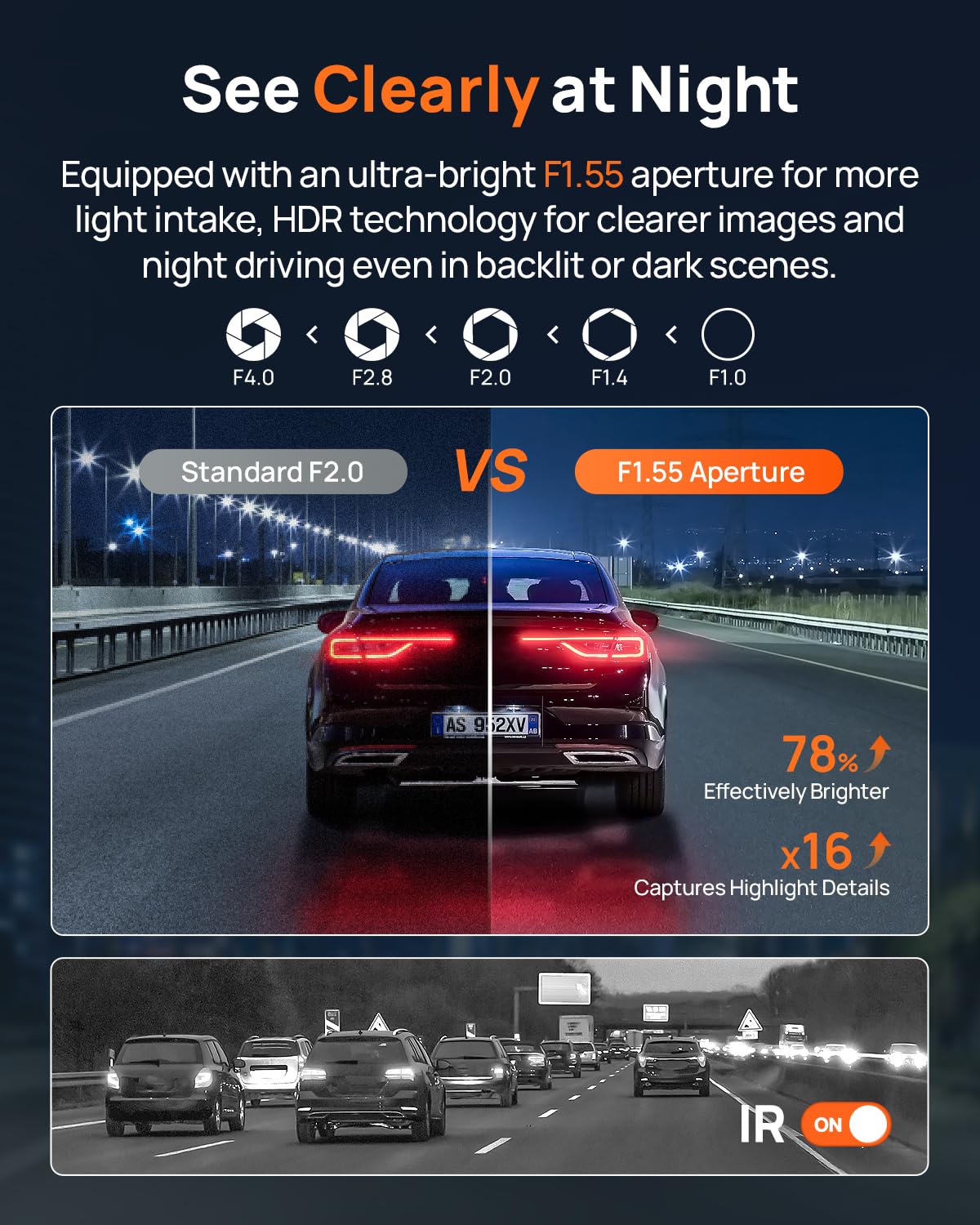 - 4K front camera resolution provides excellent clarity for accident documentation.