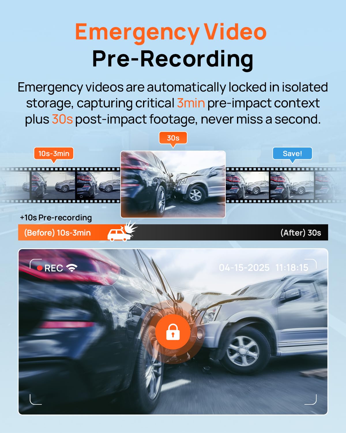 - Emergency recording features extend up to 210 seconds, capturing critical moments before impact.