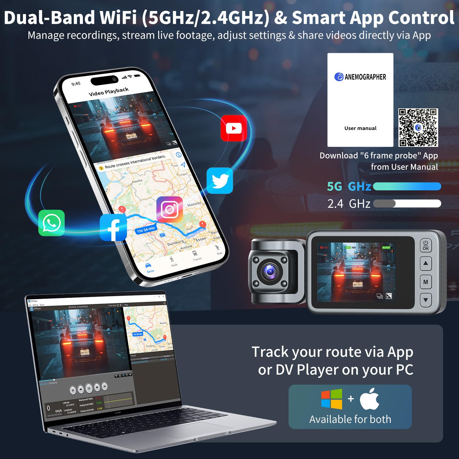 CIEVIE Dash Cam Front 4K-1.5" IPS Display, 5GHz WiFi, 64G Card, 360° Rotation Mini Dashcam, Car Camera with WDR Night Vision, 24H Parking Mode, G-Sensor, Loop Recording,170° Angle,Dash Camera for Cars