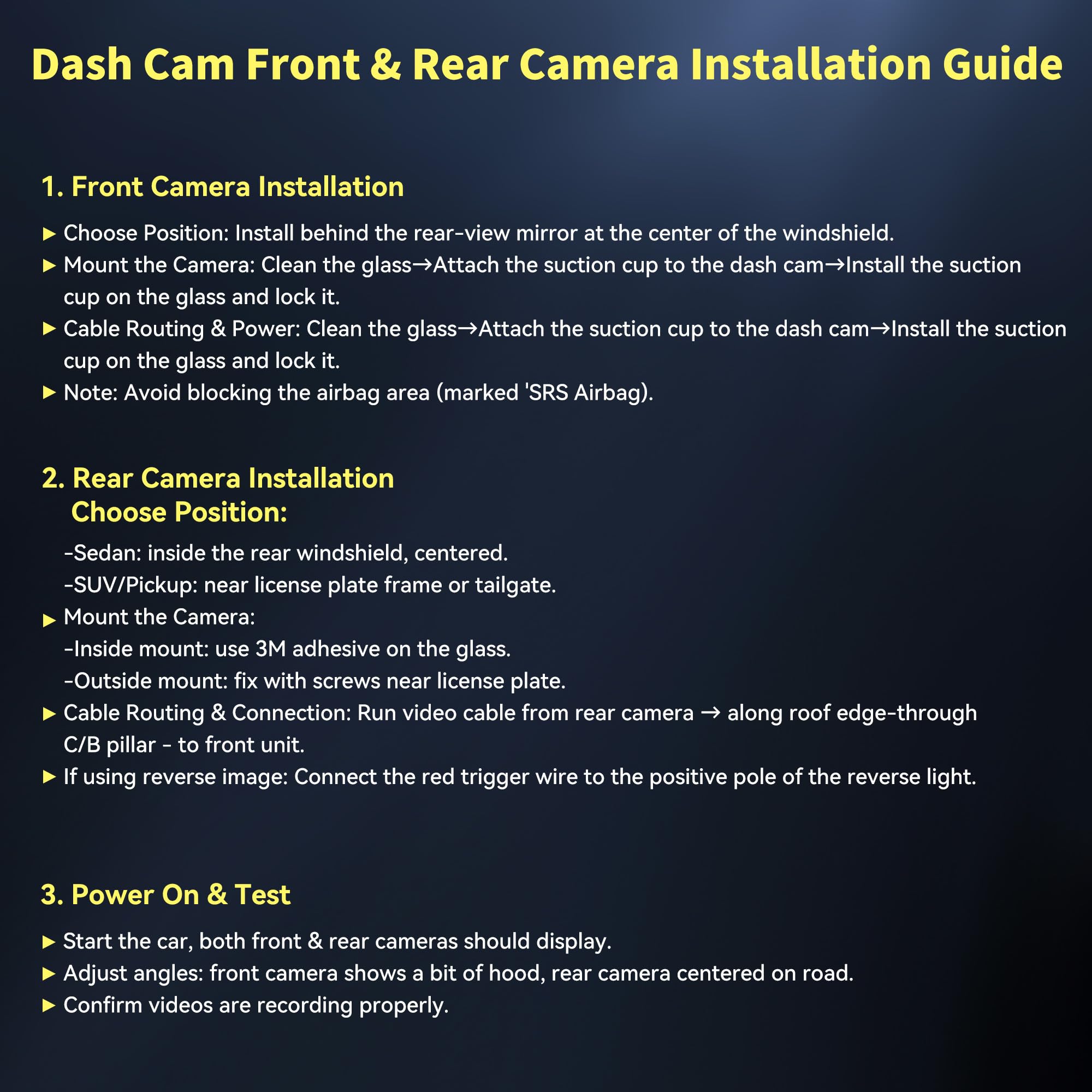 Ideal for budget-conscious drivers who want a reliable dash cam for everyday use, especially those who frequently park in urban areas. It's also a good fit for those needing front and rear coverage without the premium price. However, those seeking advanced features like GPS or superior night vision may want to explore higher-priced models.