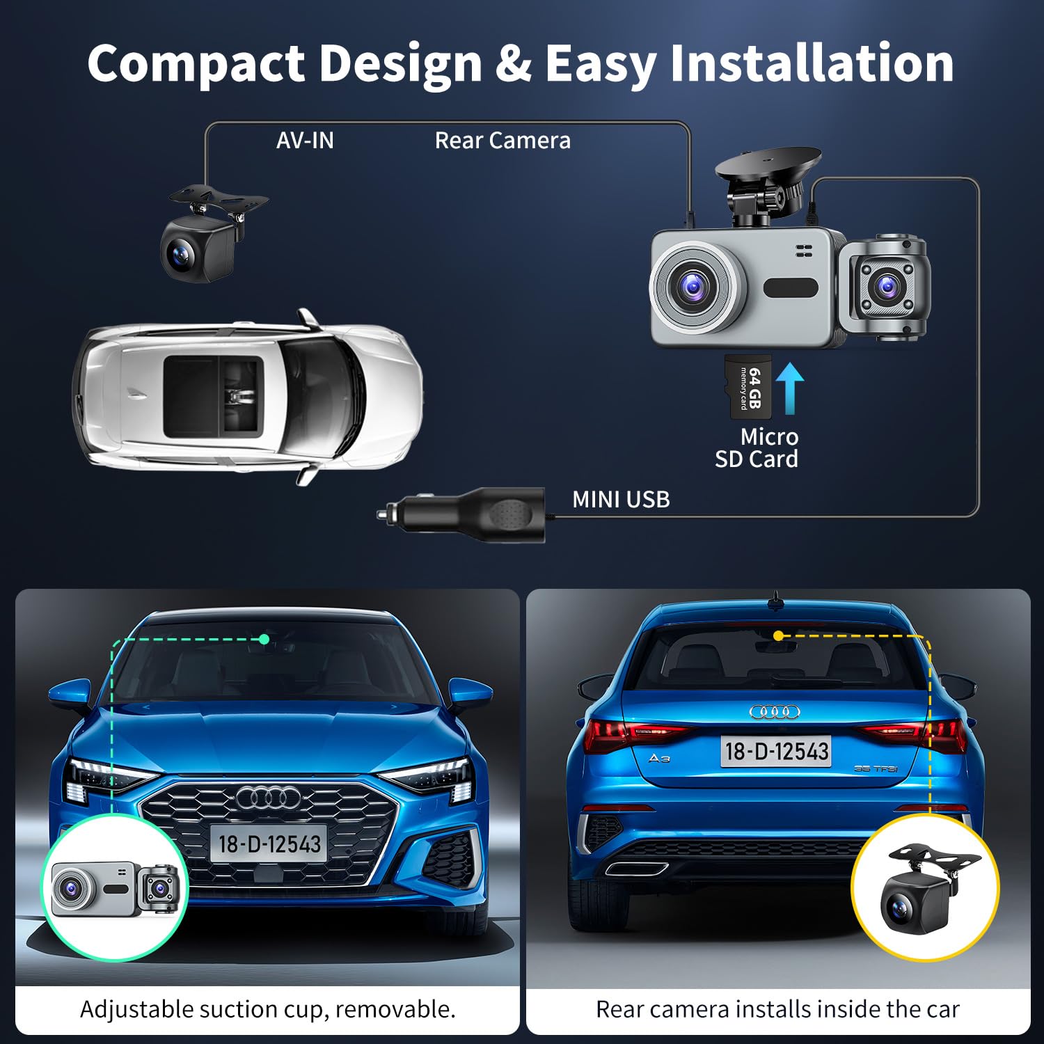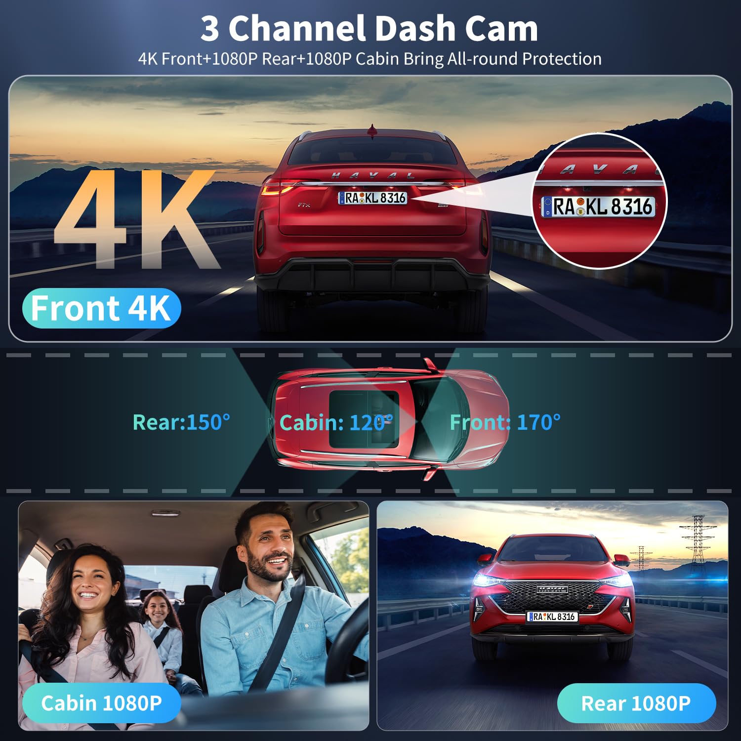 Triple-Lens Coverage: The 3-channel capability allows for comprehensive recording, reducing blind spots.