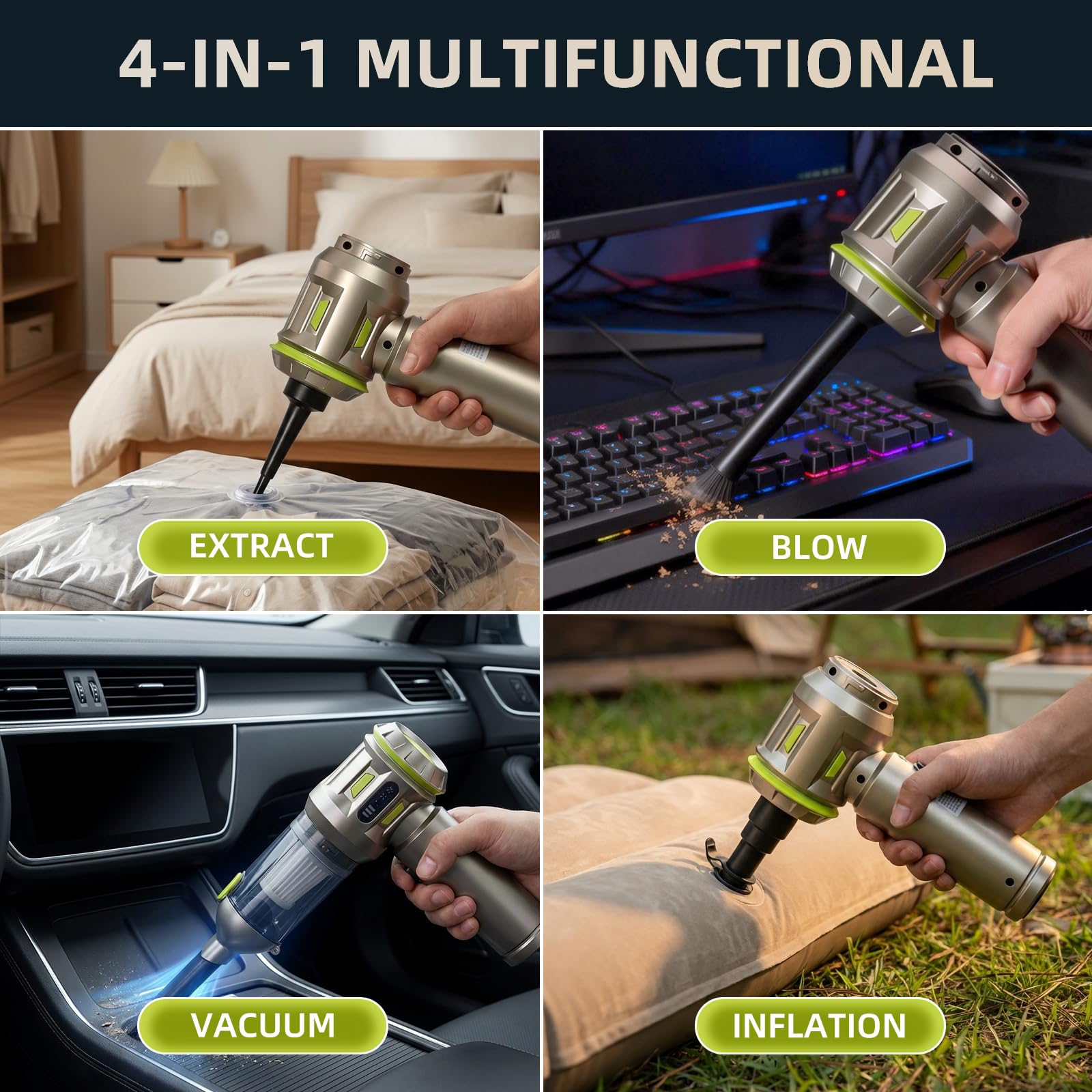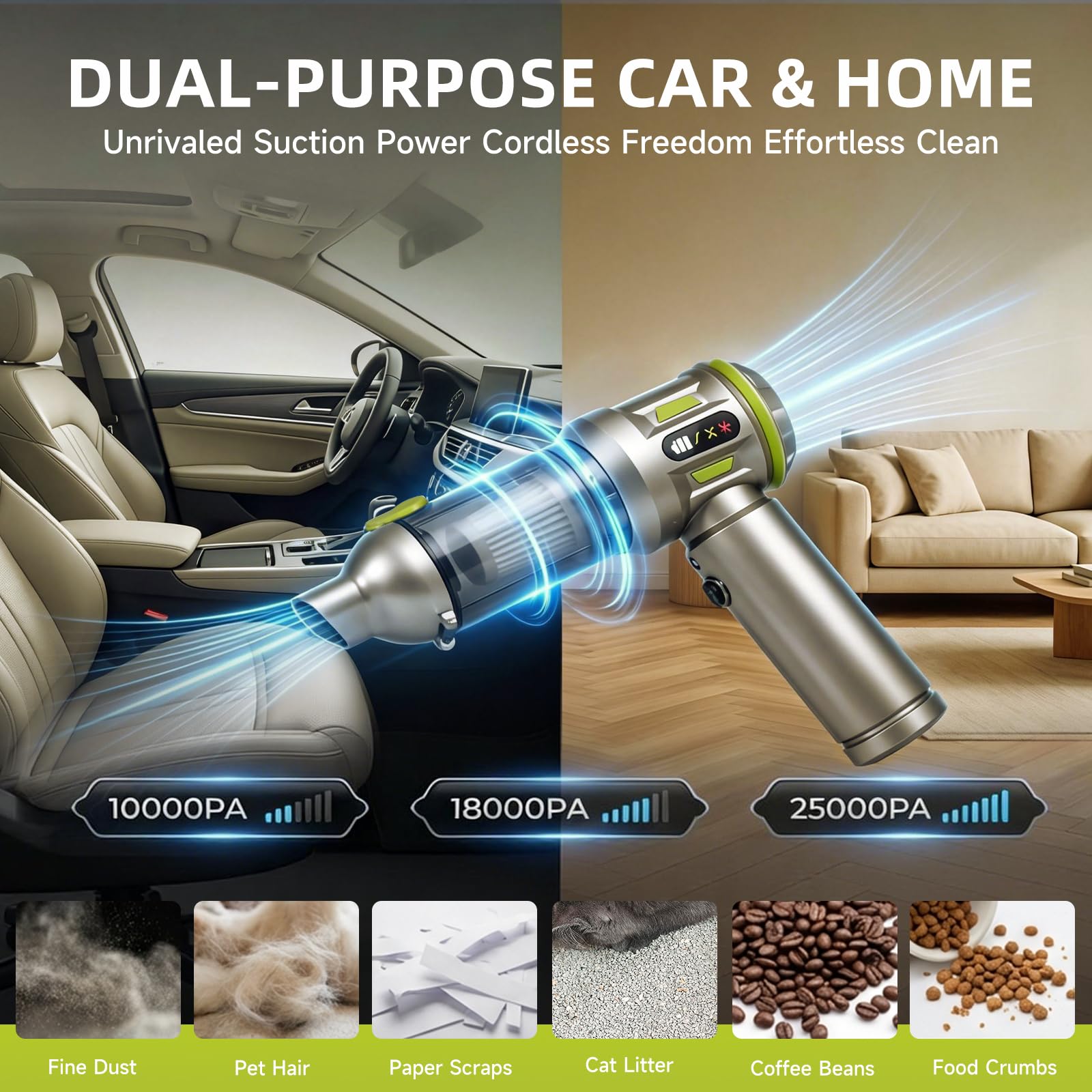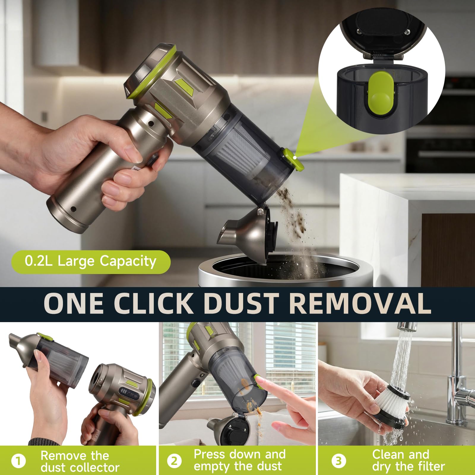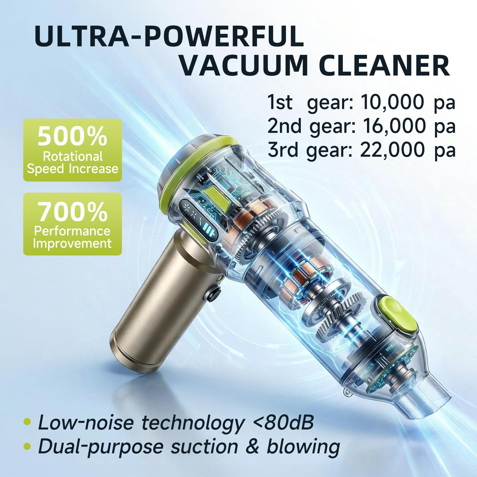 Handheld Vacuum Cleaner, 22000Pa 4-in-1 Car Vacuum Cleaner Cordless, 3 Speed Brushless Motor Mini Hoover with One-Touch Cleaning, Rechargeable Portable Air Duster for Home Car Office Pet Hair, Silver