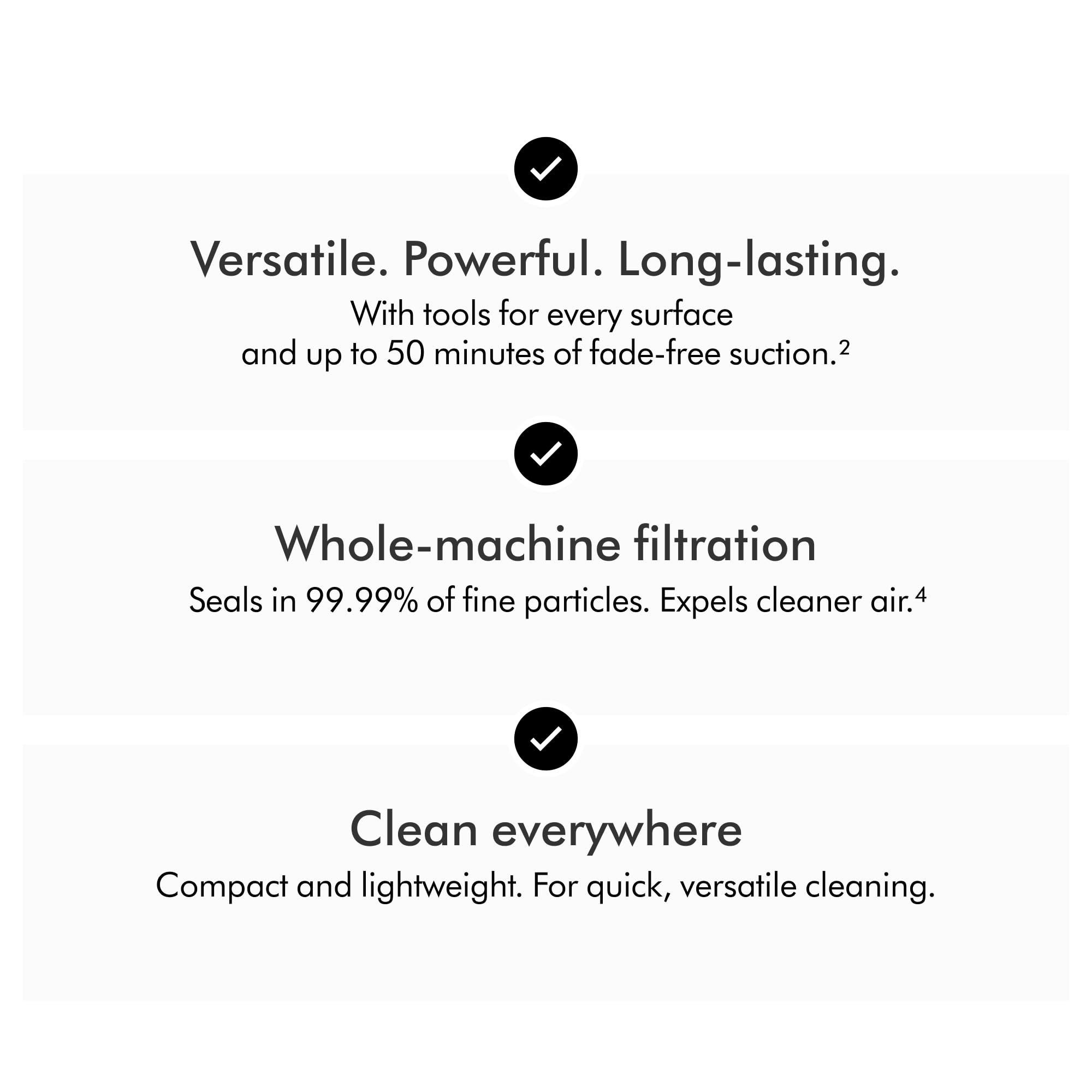 The Dyson Car+Boat offers up to 50 minutes of fade-free power, which is substantial for a handheld vacuum.
