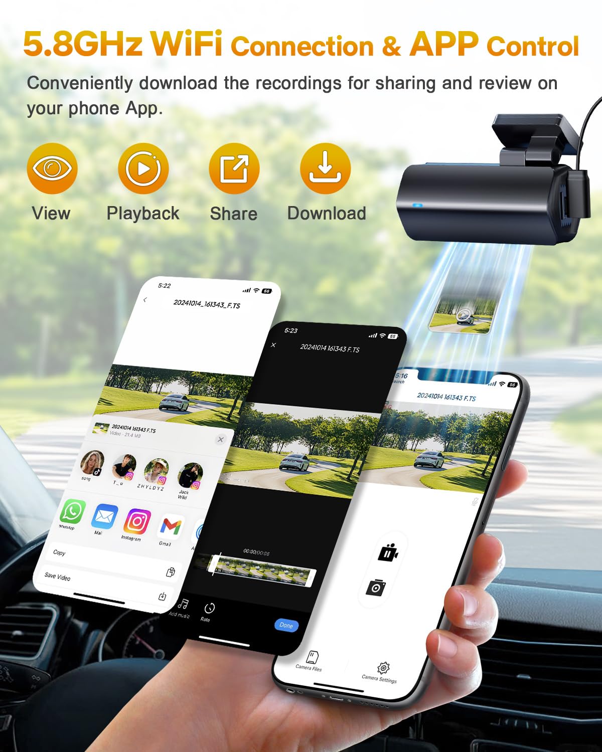 CIEVIE Dash Cam Front 4K-1.5" IPS Display, 5GHz WiFi, 64G Card, 360° Rotation Mini Dashcam, Car Camera with WDR Night Vision, 24H Parking Mode, G-Sensor, Loop Recording,170° Angle,Dash Camera for Cars
