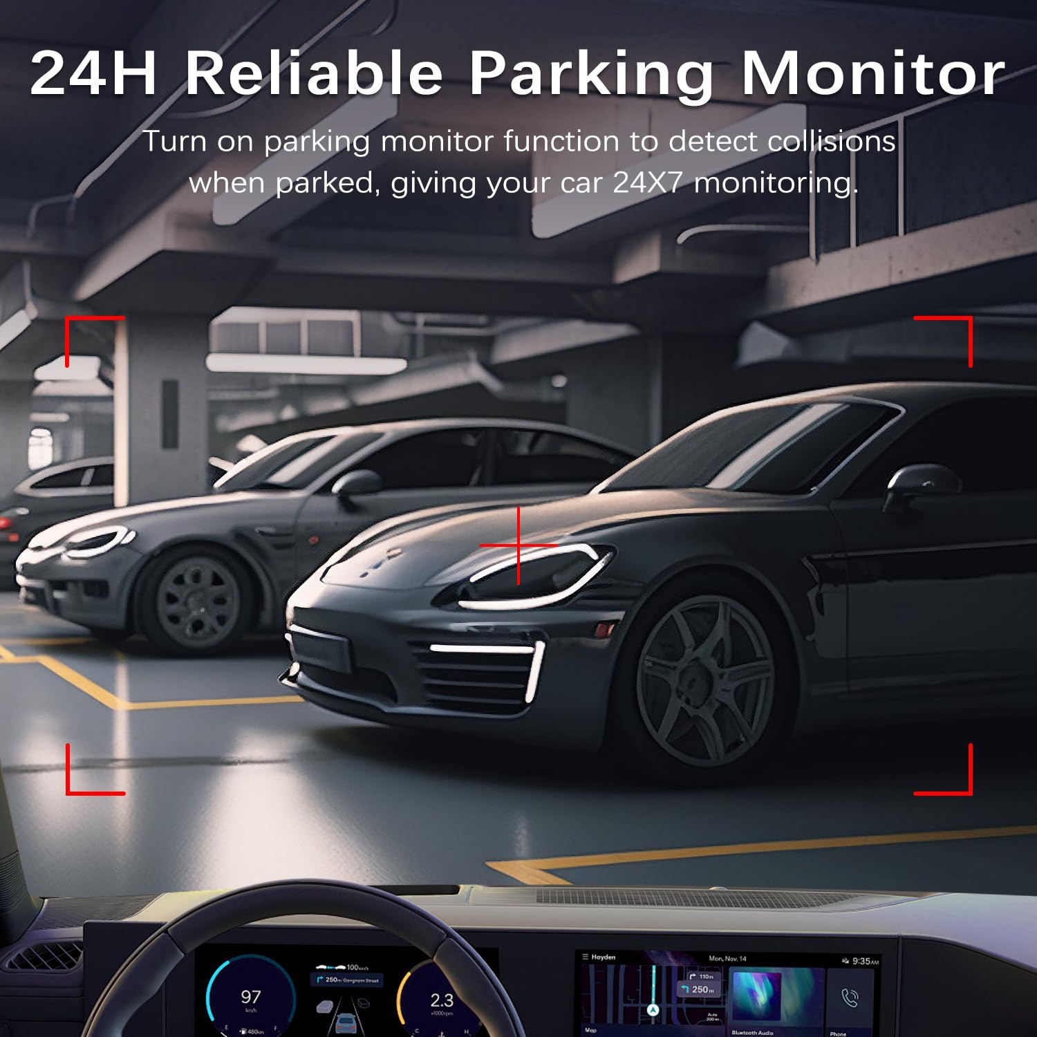 The listing mentions the parking monitor can record 20-second protected videos upon impact detection when hardwired, which is helpful if you often leave your car on the street or in public car parks.