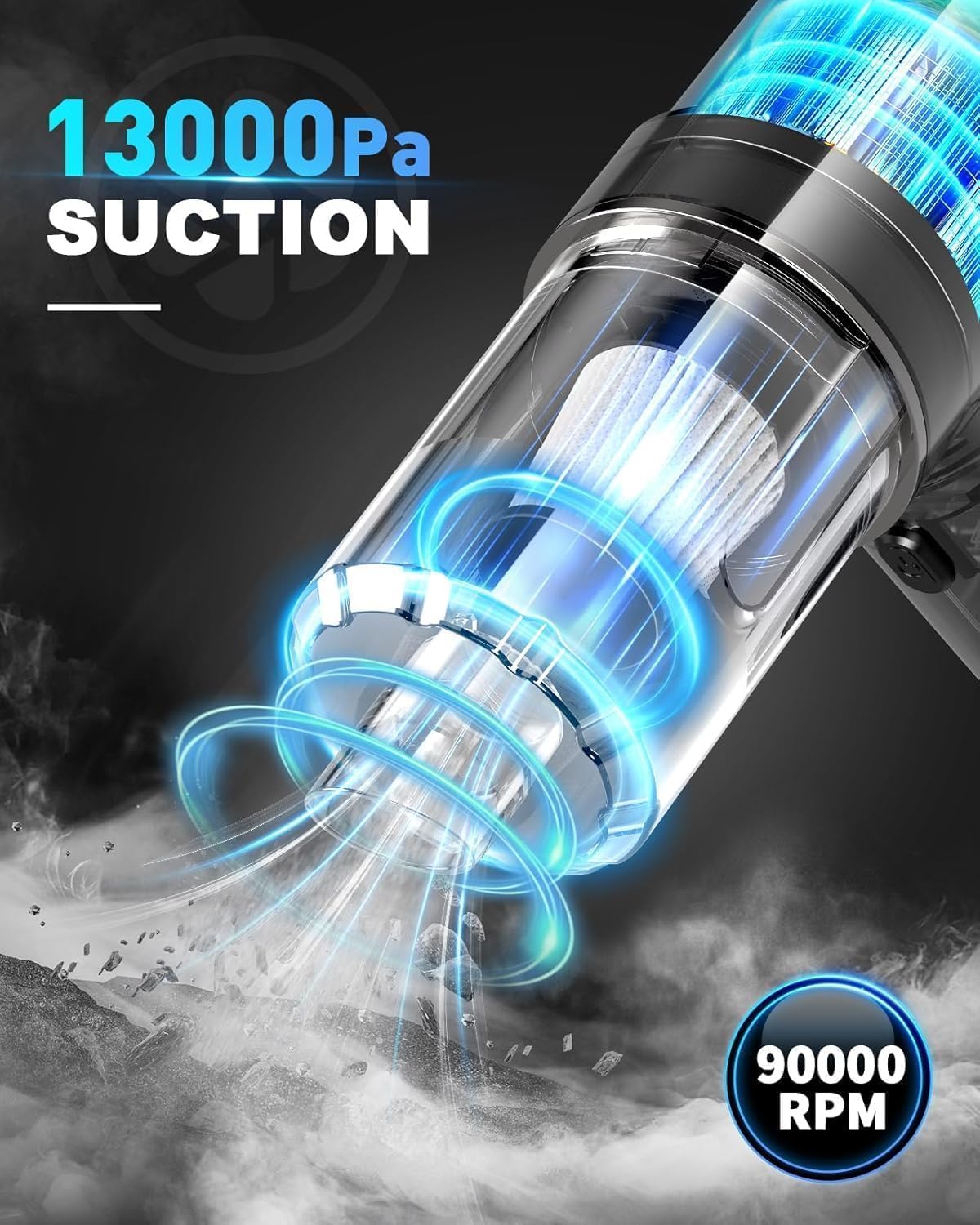 - Powerful suction of 13,000Pa effectively removes dirt and debris.