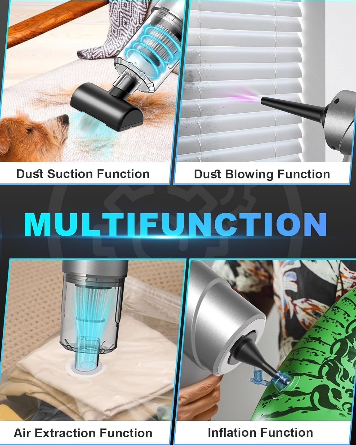 vs Handheld Vacuum Cleaner, 22000Pa 4-in-1 Car Vacuum Cleaner Cordless, 3 Speed Brushless Motor Mini Hoover with One-Touch Cleaning, Rechargeable Portable Air Duster for Home Car Office Pet Hair, Silver