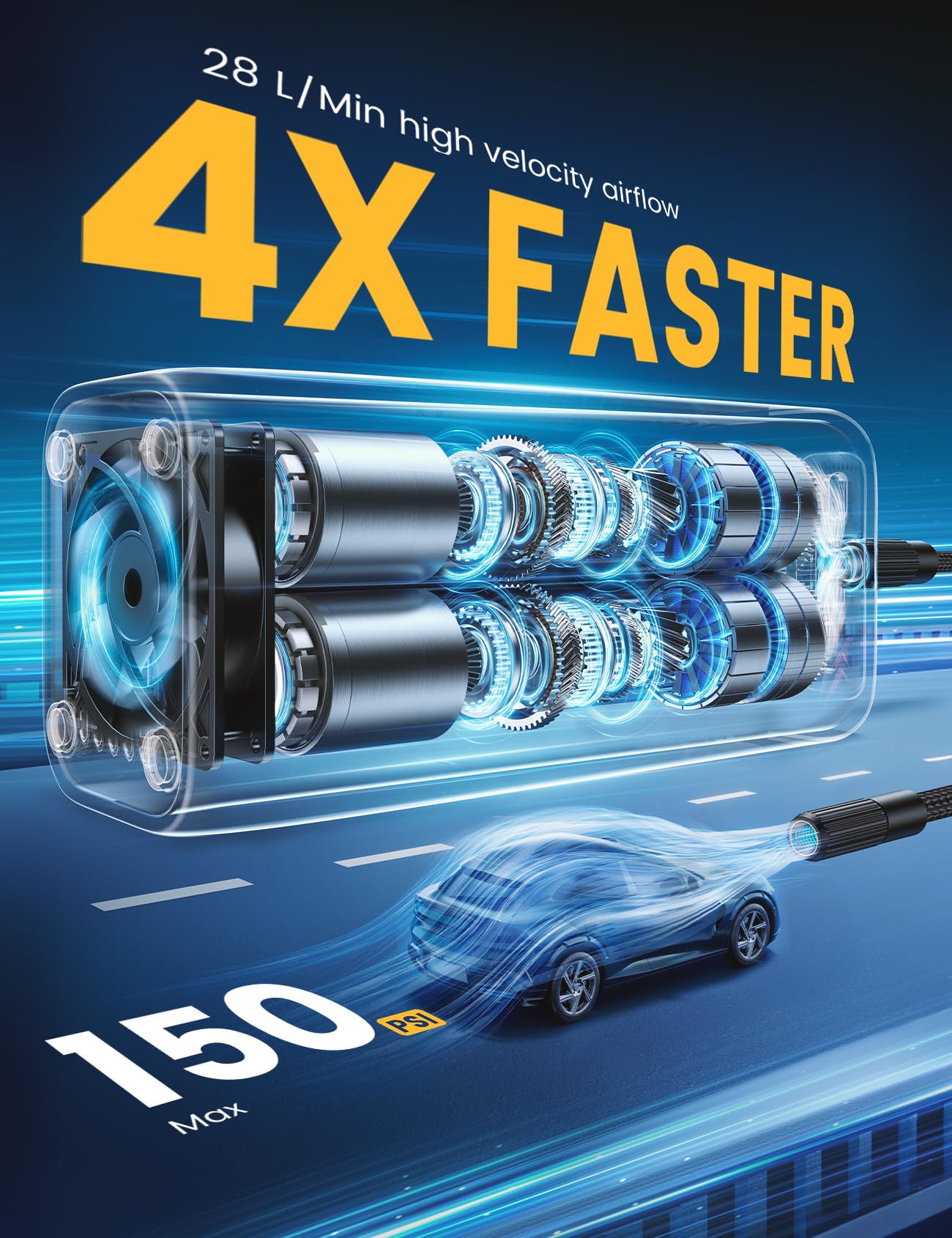- Fast Inflation: With a maximum pressure of 150PSI, it inflates tyres quickly, saving time in emergencies.