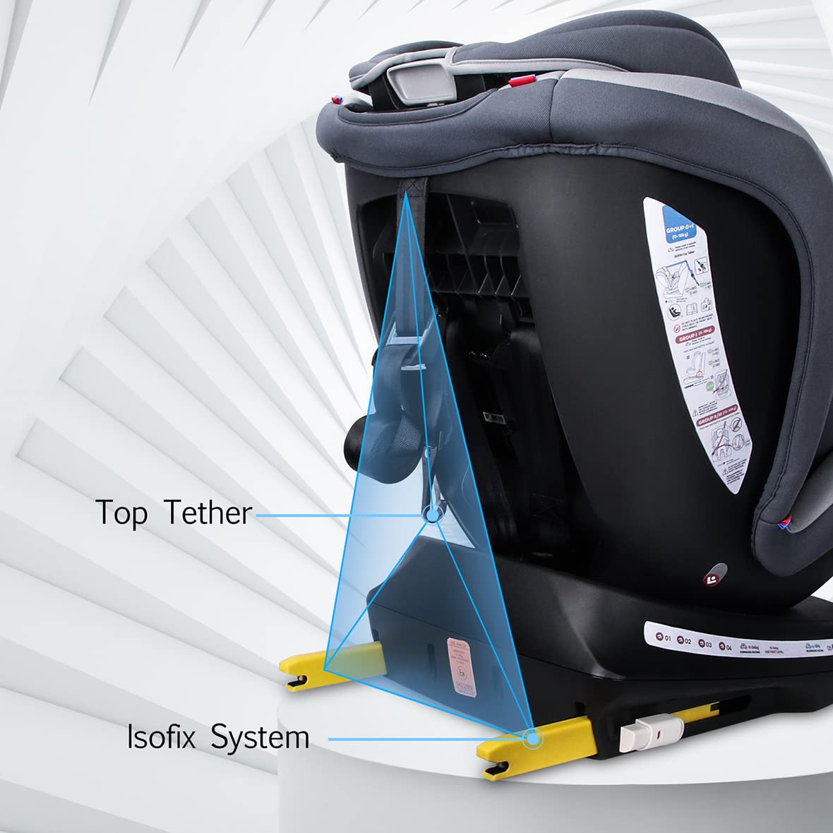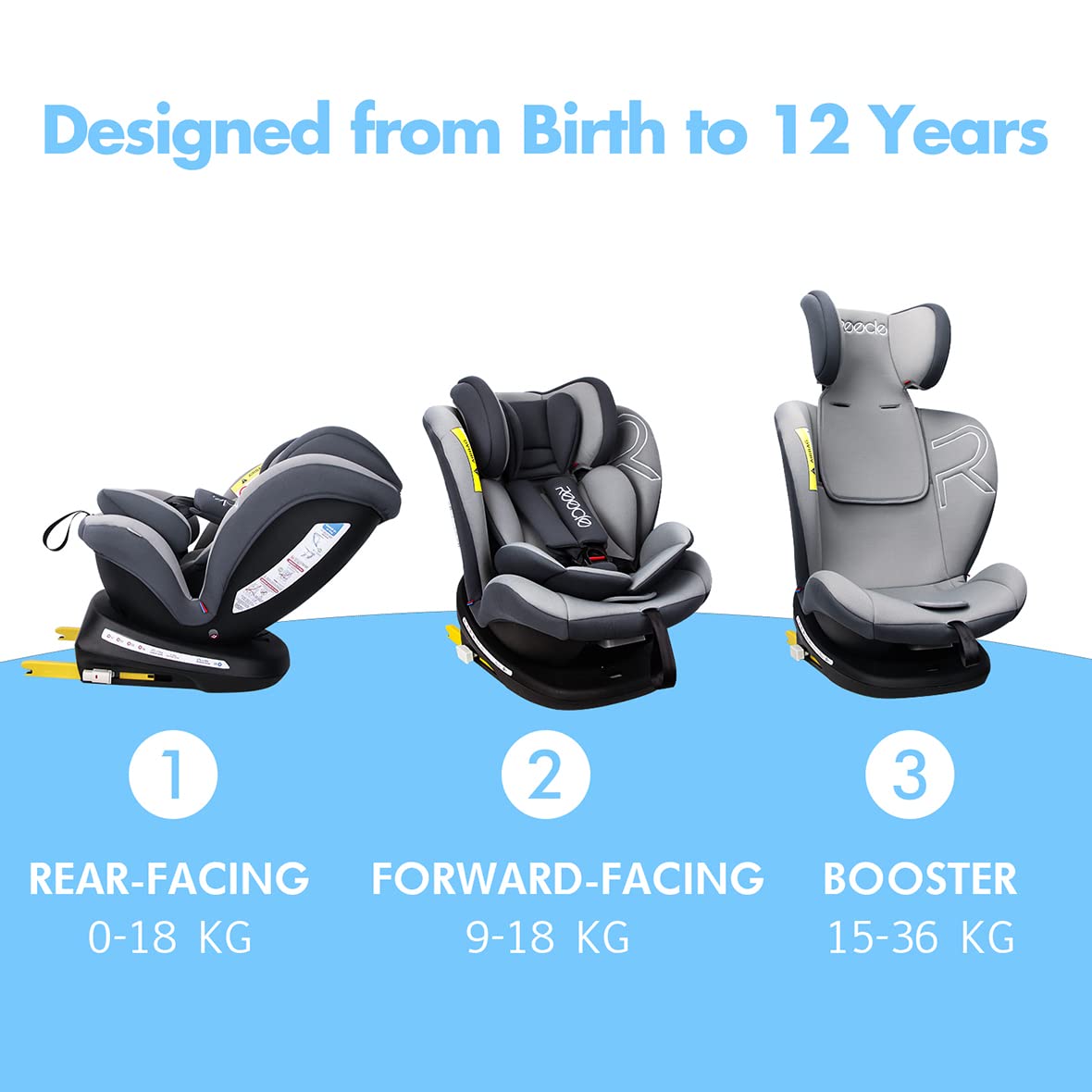 One of the standout features of the Reecle seat is its compliance with UN ECE test standards, ensuring that it meets safety regulations. It offers both extended rearward facing (0-18 kg) and forward facing (9-36 kg) options, providing flexibility as your child grows. The ISOFIX connectors and Top Tether make installation straightforward, and for vehicles without ISOFIX, the seat can also be secured using the car's 3-point seat belt.