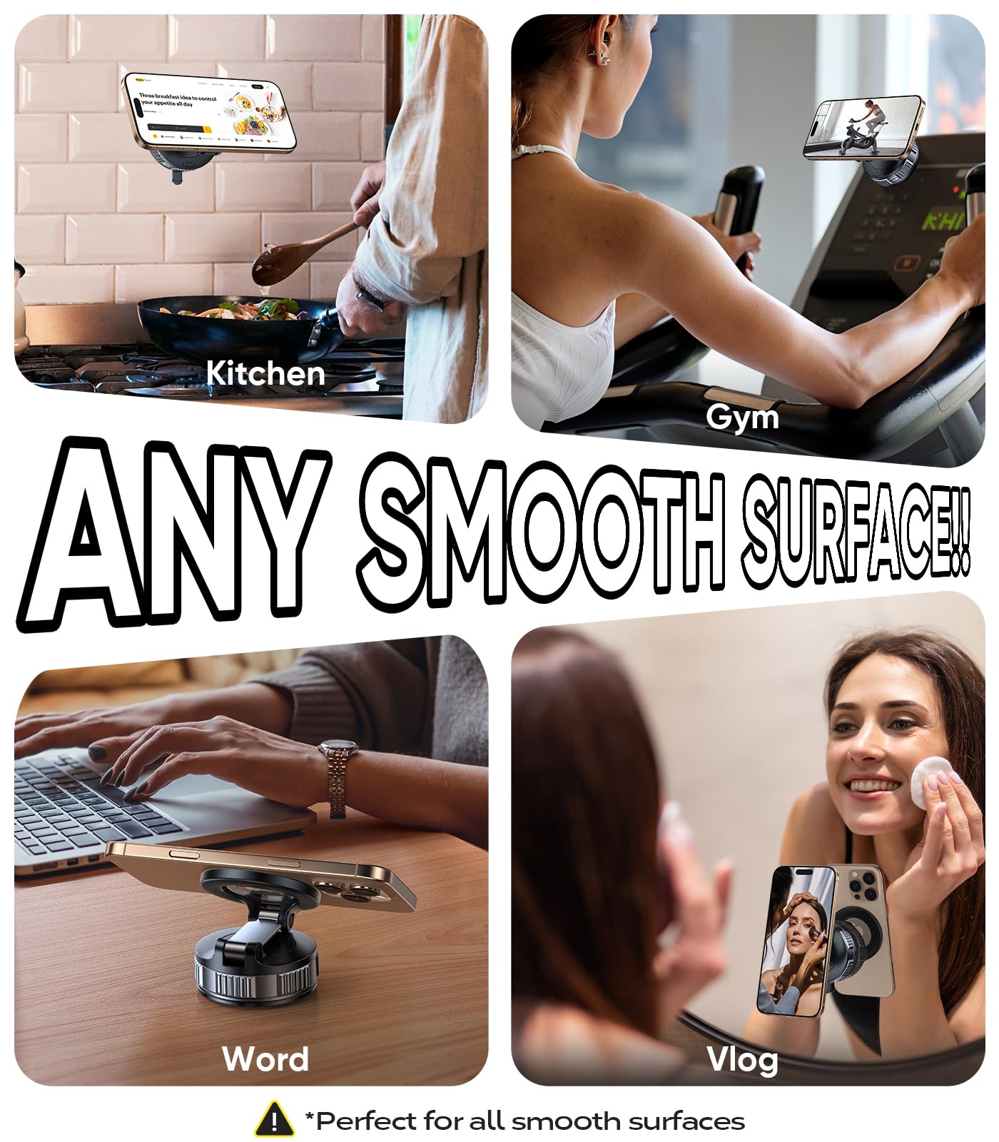 - Strong vacuum suction supports over 55 kg, ensuring stability.