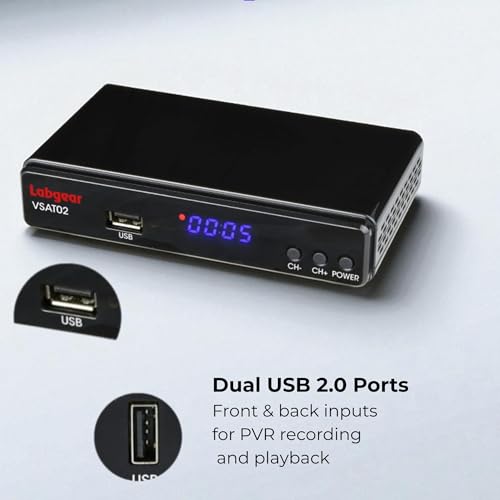 With USB 2.0 ports available on both the front and back, the Labgear VSAT02 allows for easy connection of external storage devices. Users can record their favorite shows, a feature that enhances its functionality beyond just a receiver.