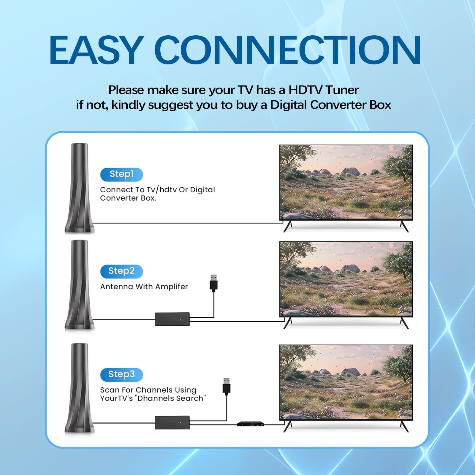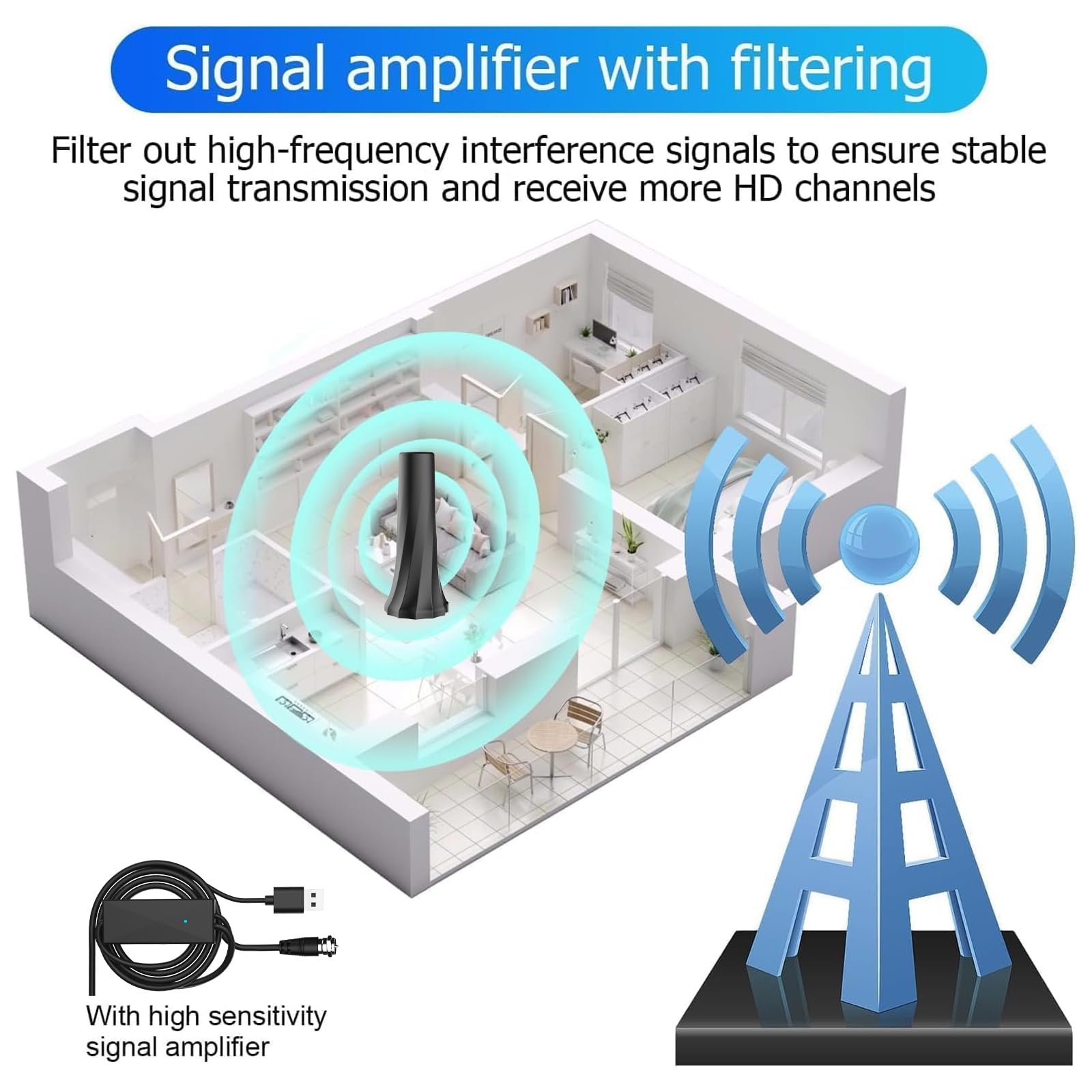 - Built-in smart signal booster filters 4G noise for stable viewing.
