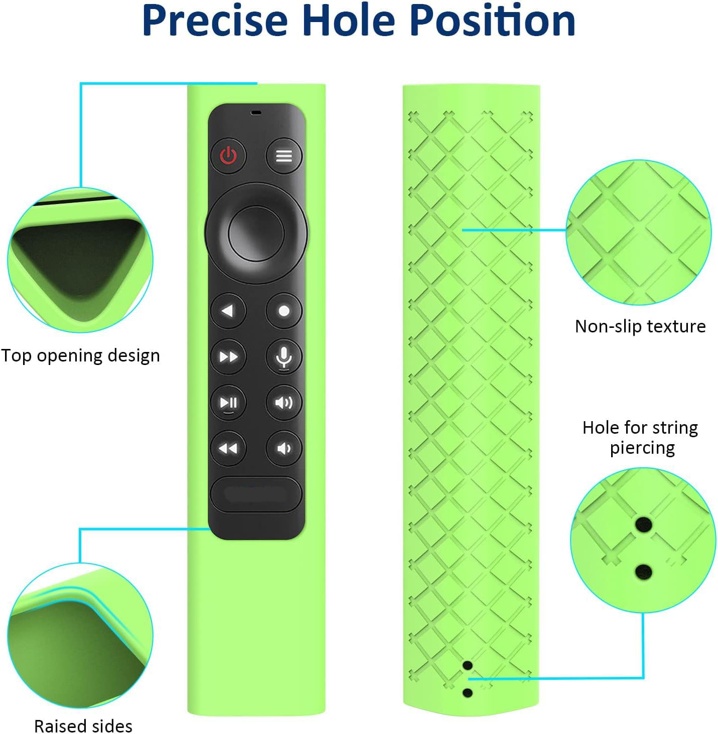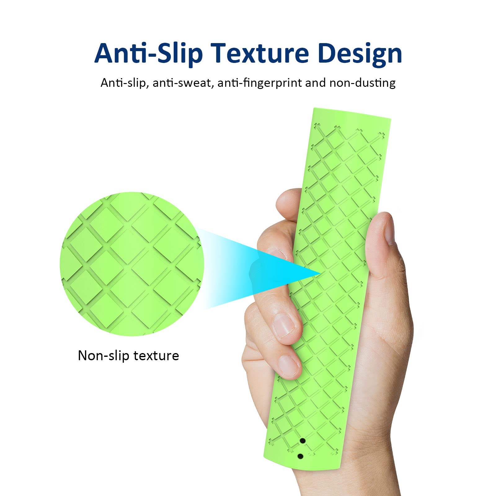 - Anti-slip design prevents the remote from slipping off surfaces.