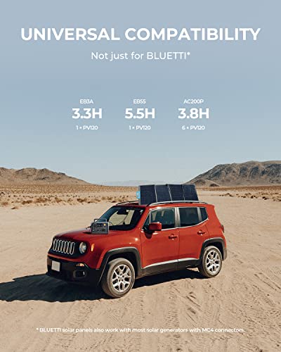 The solar panel comes with a solar connector compatible with several BLUETTI solar generators, including the EB3A, EB55, EB70, AC200P, and more. This versatility allows users to select the power station that best fits their needs.