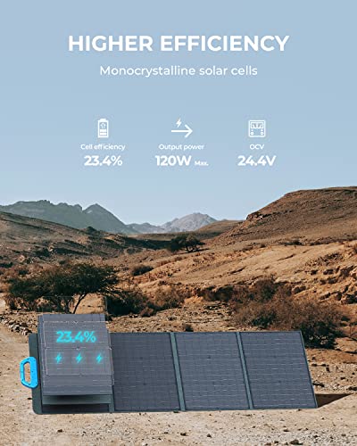 BLUETTI Solar Panel, 120 Watt for Portable Power Station EB3A EB55 EB70S AC2A AC70 AC180 AC200L AC200MAX AC300, Foldable Solar Charger with Adjustable Kickstands for RV, Camping, Blackout