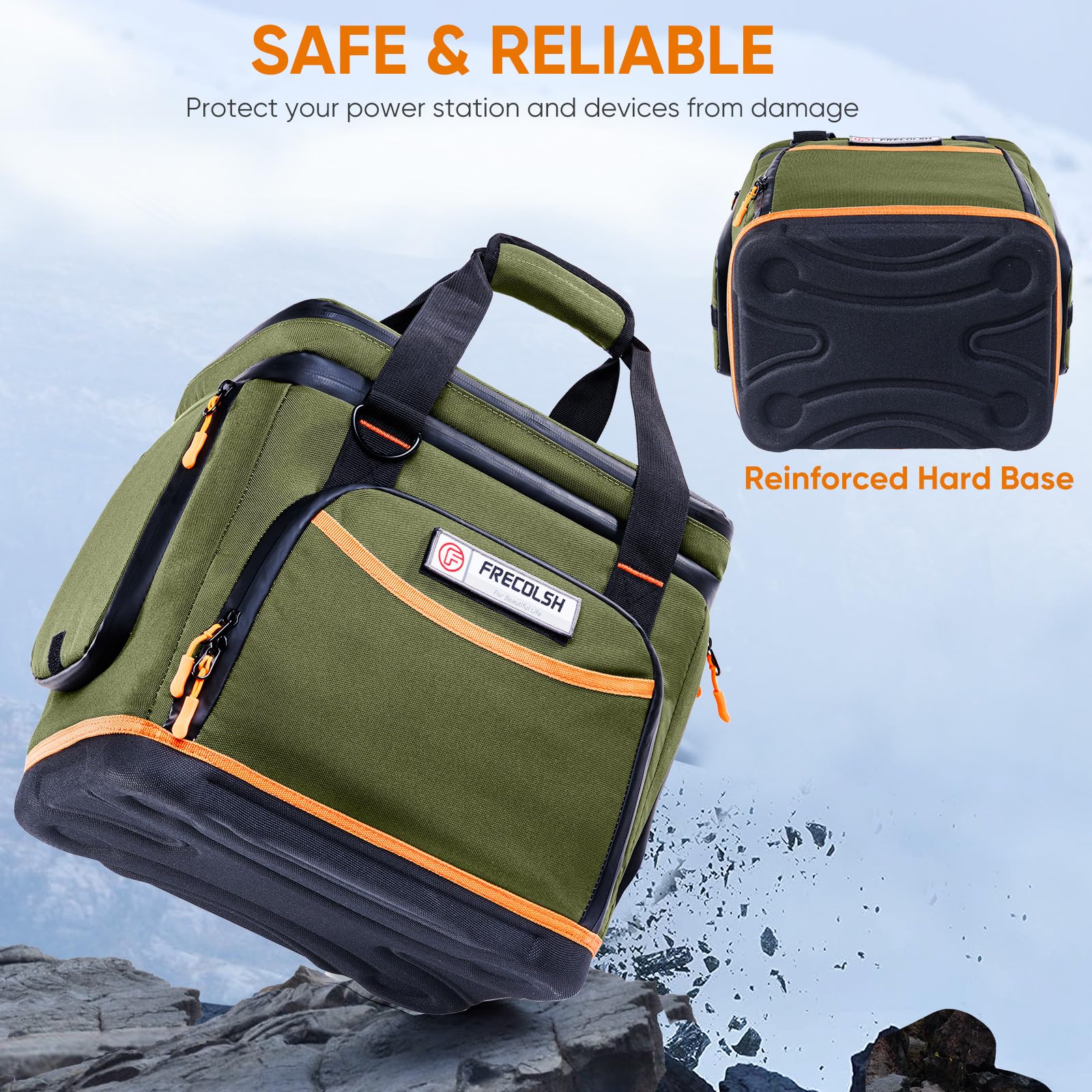 First Impressions: Out of the box, the carrying case feels robust and well-designed. The heavy-duty polyester material and thick padded lining suggest durability. The hard-molded bottom adds a layer of protection against impacts, making it suitable for outdoor use. The bag is also waterproof, which is crucial for protecting your power station from unexpected weather.