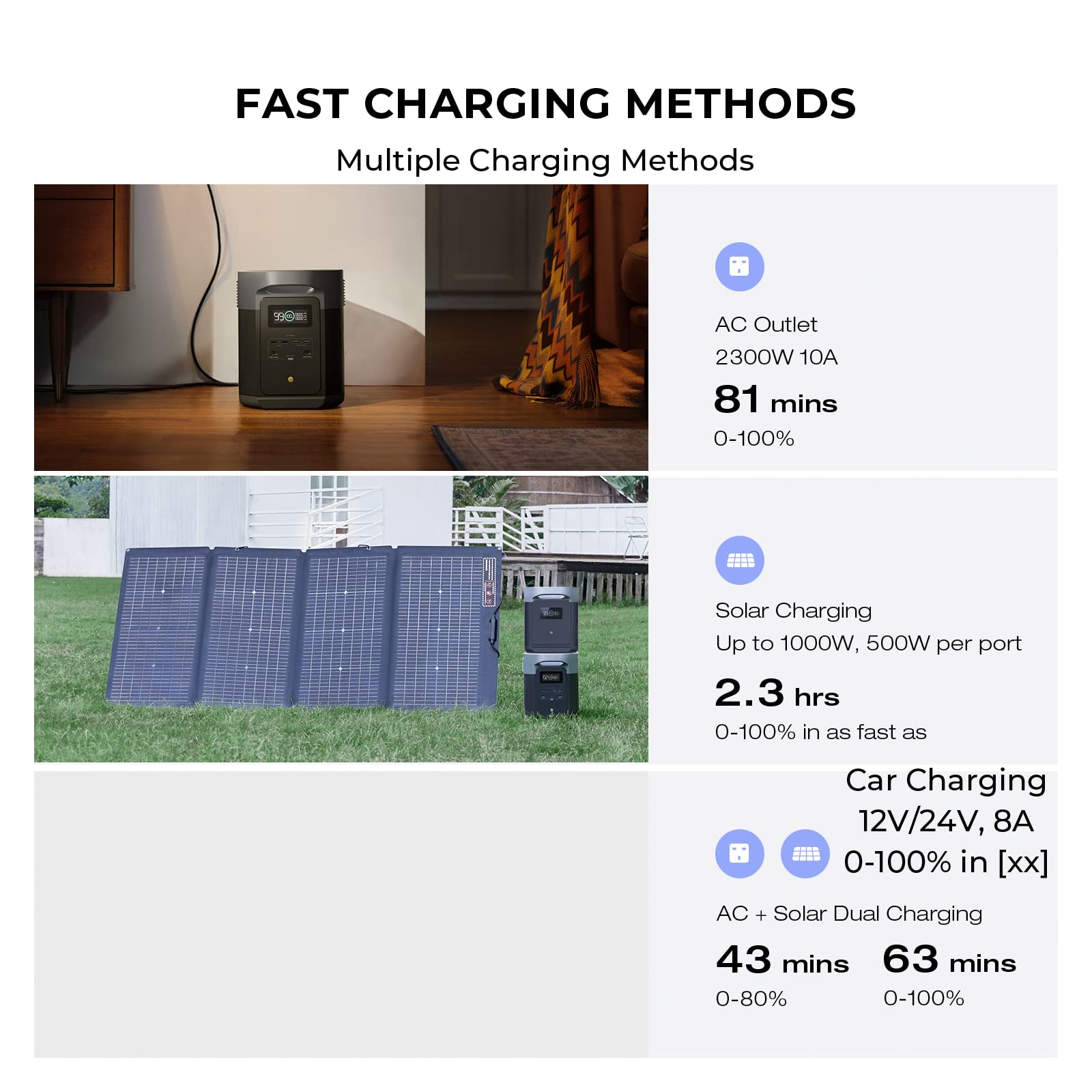 The ECOFLOW Extra Battery can be fully charged from 0-100% in just over 1 hour using an AC outlet, which is among the fastest in the industry.