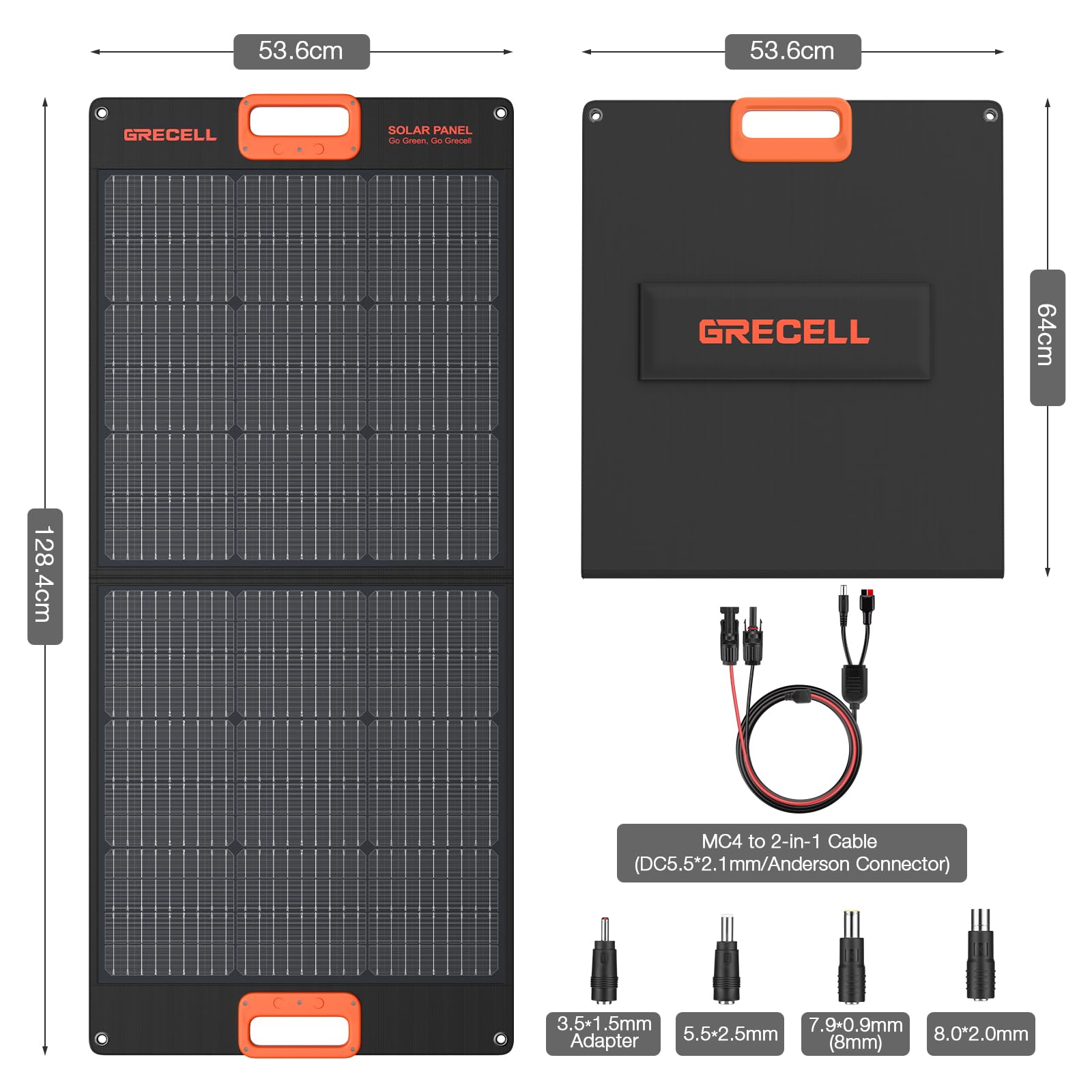 What is the efficiency of the GRECELL solar panel?