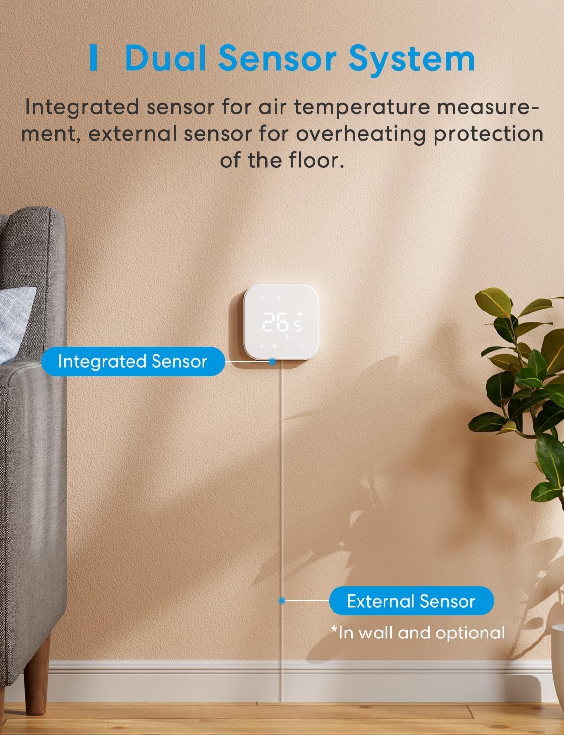 - Dual sensors for precise temperature control within ±0.5°C, enhancing energy efficiency.