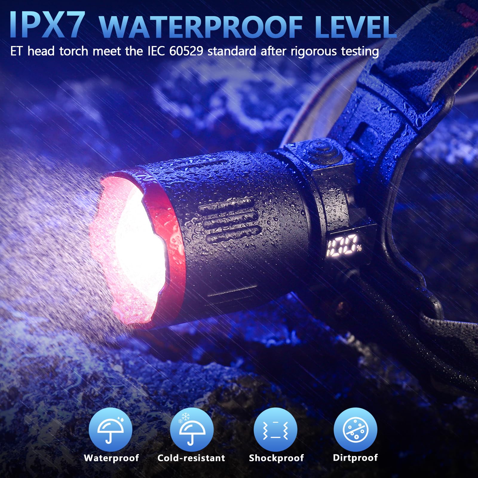 At £29.99, this ET head torch arrives with a very aggressive feature list: USB-C input and output, two 3000mAh batteries, six lighting modes, waterproof construction, a 120° adjustable beam, zoom function, motion sensor control, and a lightweight headband with foam pads. That is a lot to ask for under £30, and the price context matters here: the current price is also the all-time lowest recorded, with an average price of £29.99 and no higher historical data point supplied.
