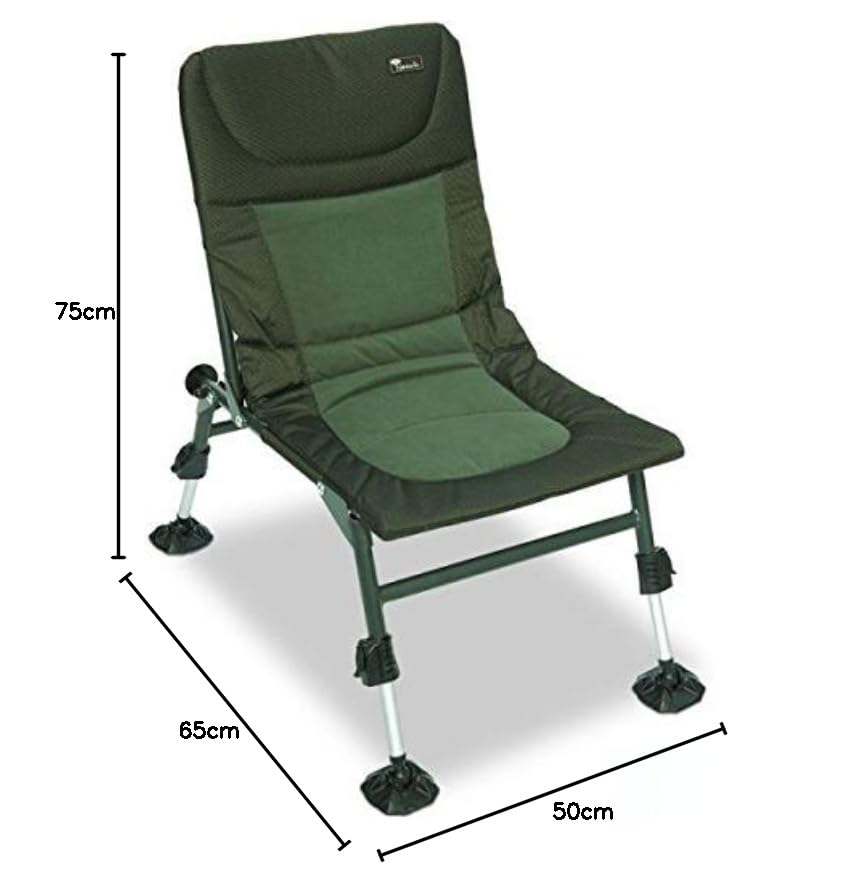 The strongest build-related detail here is the combination of adjustable legs and large mud feet. That usually matters more than flashy extras when you are fishing UK venues with soft margins, uneven grass, or pegs that slope away from the water. The chair’s dimensions, 50 x 65 x 75cm, suggest a compact footprint that should tuck neatly beside a rod pod, bait bucket or rucksack. That makes it well suited to stalking carp, lure sessions for pike, or quick sea bass outings from accessible shore marks.
