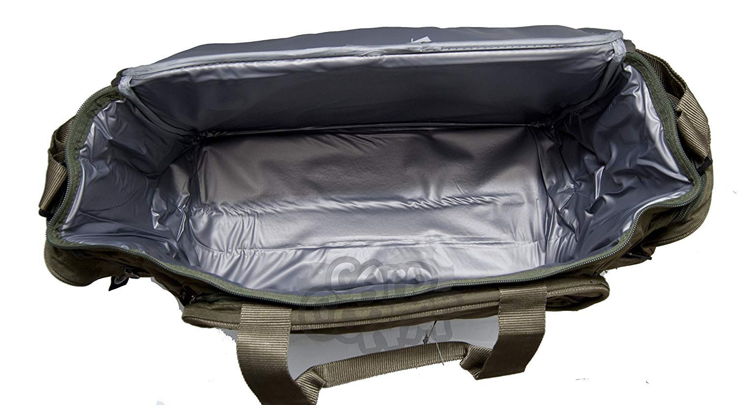 - The carryall has an insulated main compartment plus three external pockets, which helps with bait, food, and tackle organisation.