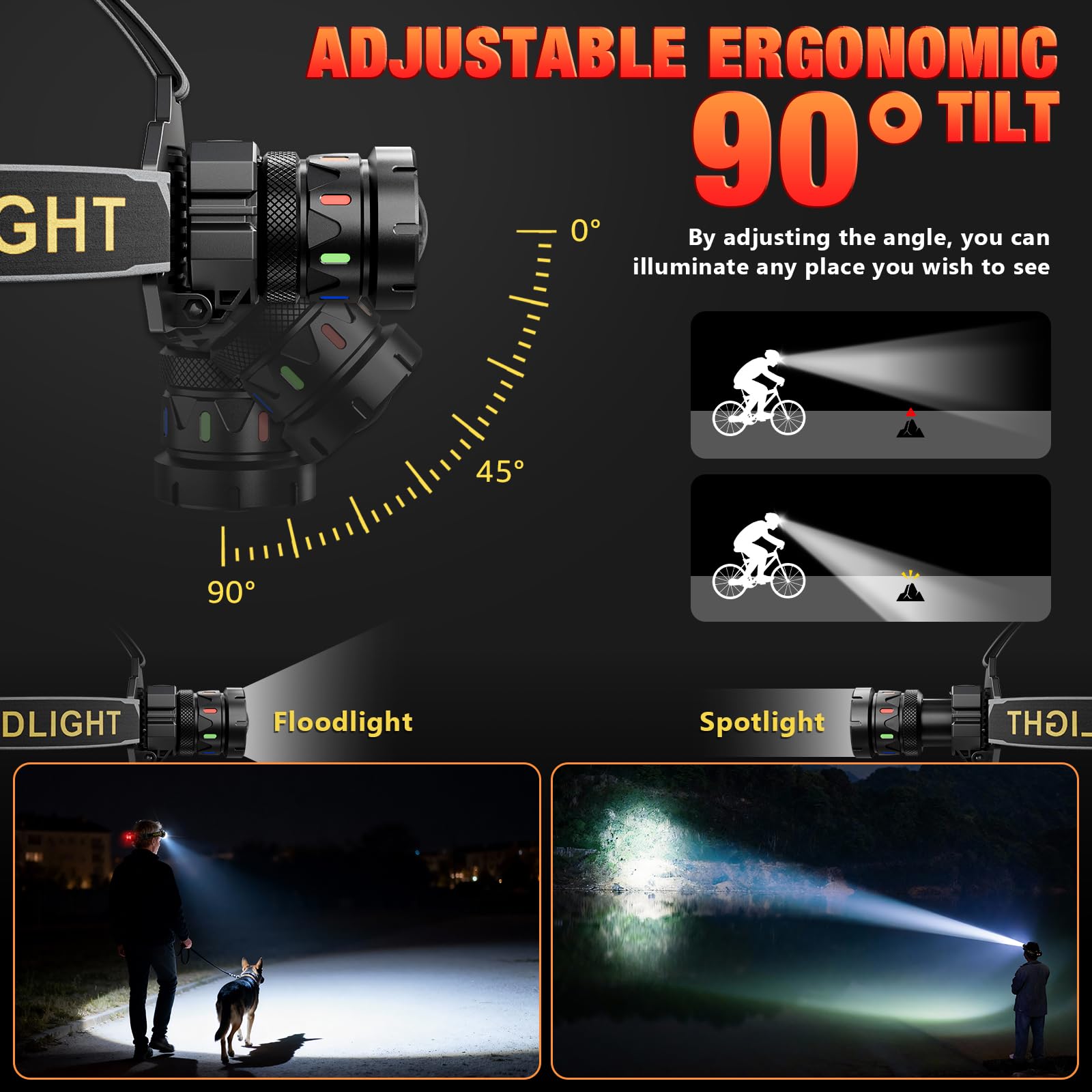 At £21.59 today, this Sefitopher sits in a price band where many head torches are basic and stripped back. Here you get 9 modes, a motion sensor, a battery level display, 12.5–18.5 hours runtime, an external battery pack function, Type-C phone charging, IP65 waterproofing, and a 90° adjustable focus headlight. That is a strong feature list for late-night carp sessions, winter dog walks, bank-side rigs, or setting up on a windy, wet estuary.