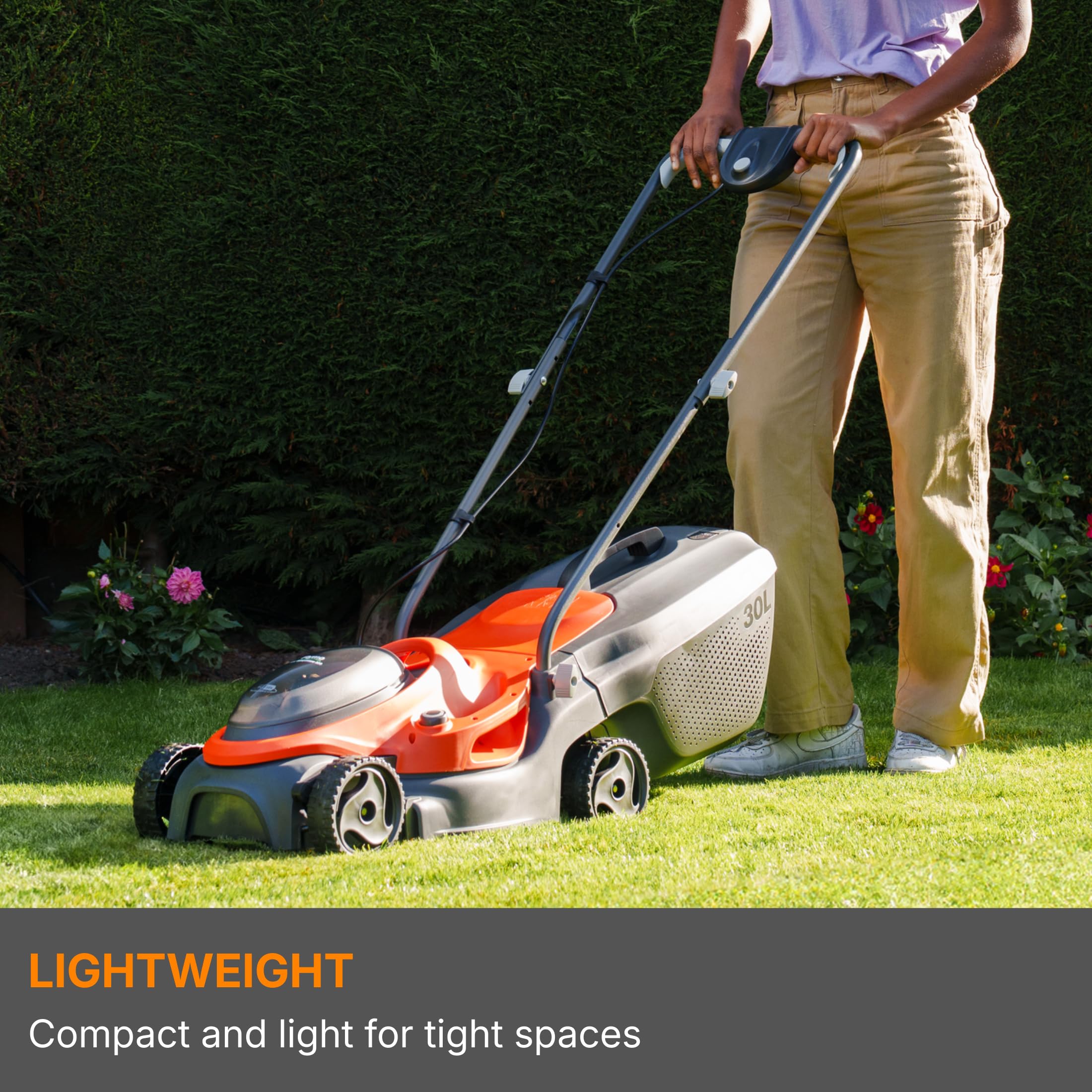 - Lightweight design for easy manoeuvrability, ideal for smaller gardens.