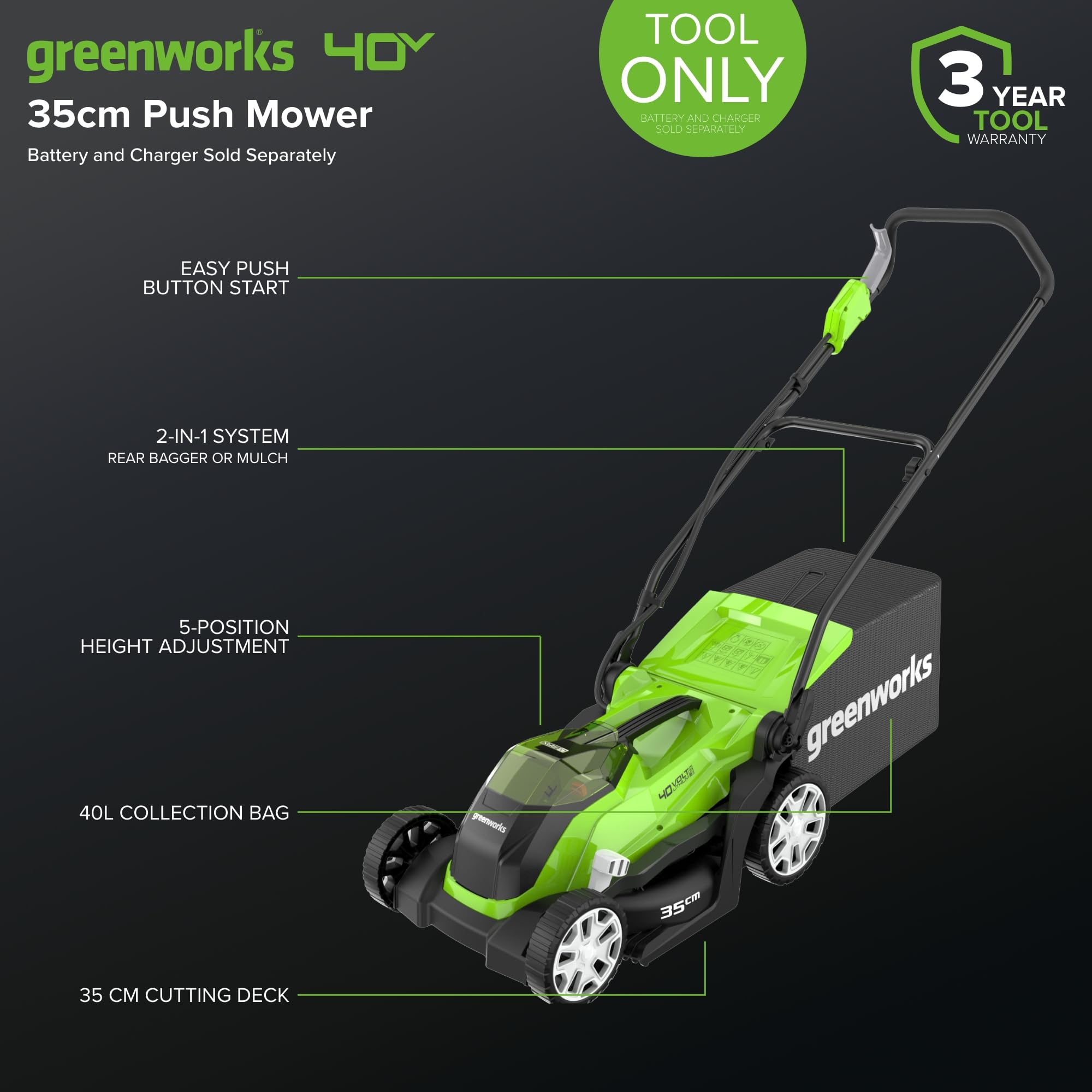 Greenworks has a reputation for producing durable electric tools, and the G40LM35 is no exception. With a 3-year guarantee, buyers can feel reassured about the longevity of their investment. However, the absence of a battery and charger in this 'tool only' package means buyers must factor in the additional cost if they do not already own a compatible Greenworks battery. A 40V 2Ah battery is recommended for lawns up to 200m², while a 40V 4Ah is ideal for the full 400m² capacity.