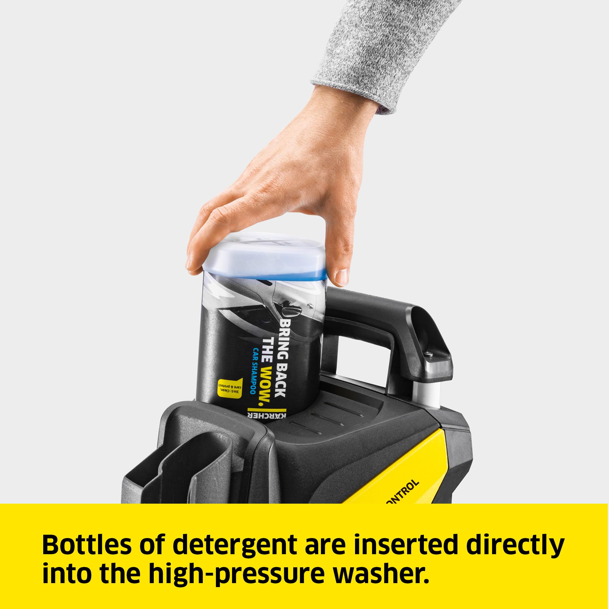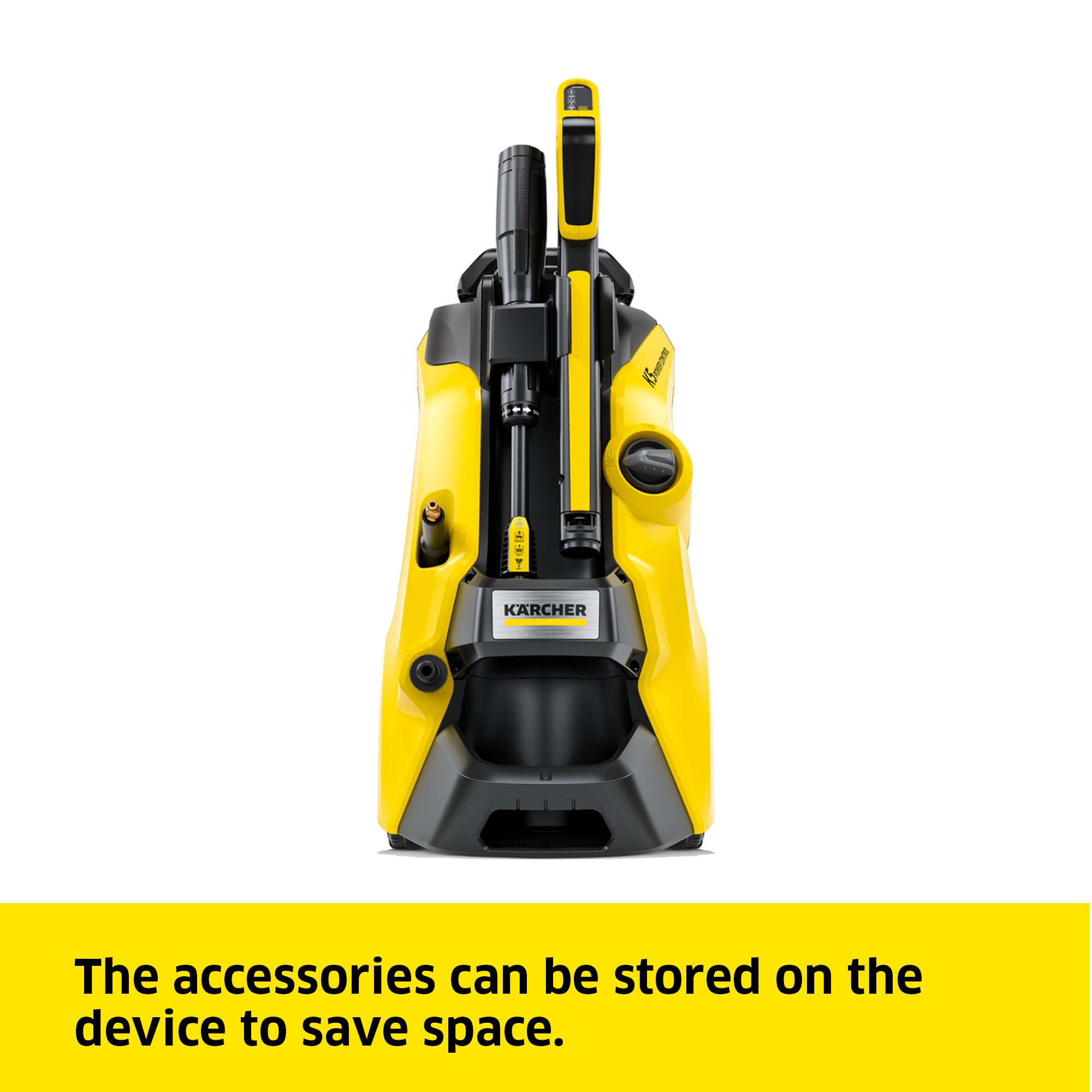 The Kärcher K 5 is effective on a variety of surfaces, including vehicles, patios, outdoor furniture, and fences, thanks to its adjustable pressure settings.