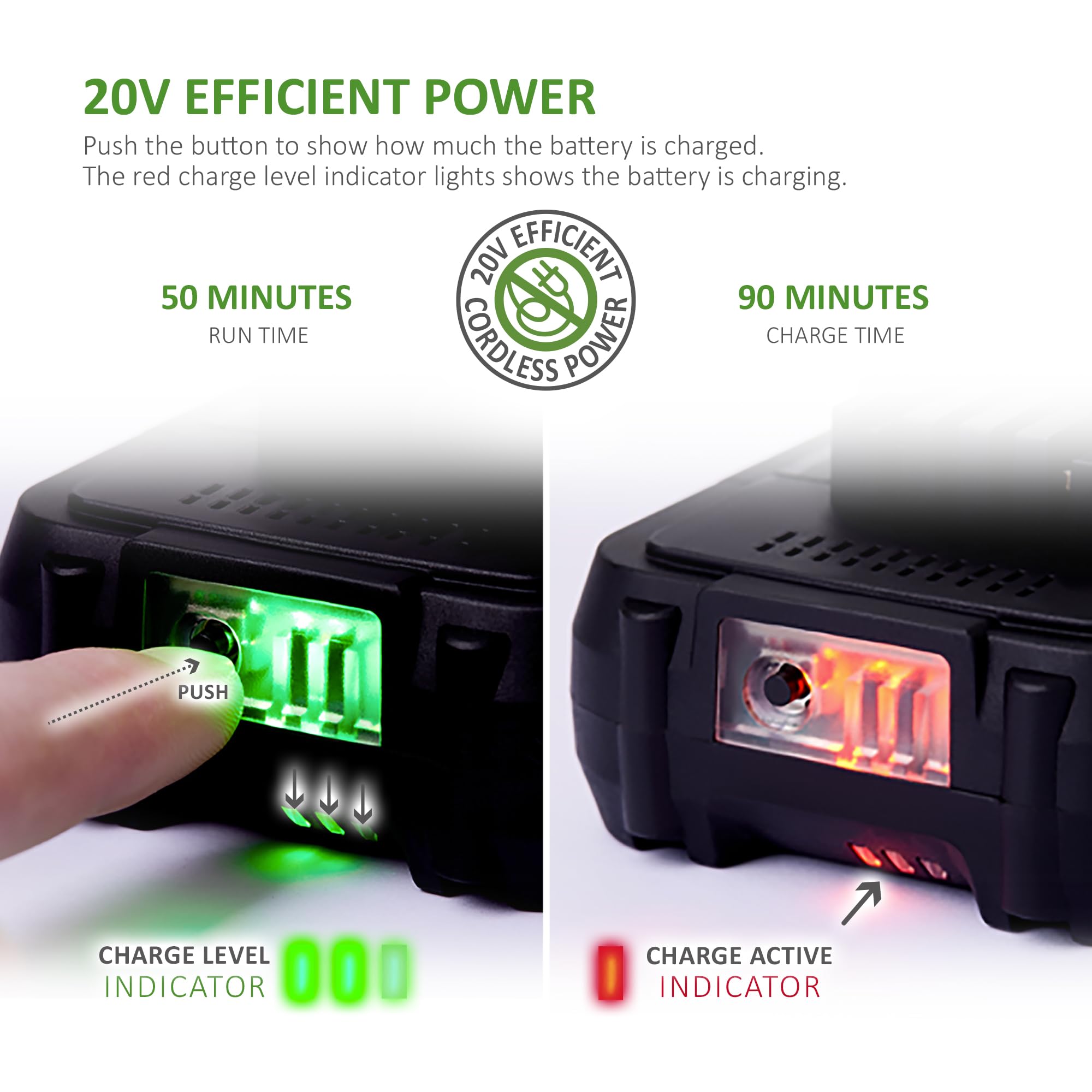 It runs on a 20V Max lithium-ion battery and claims 50 minutes of continuous runtime. For small to medium gardens, that’s actually a decent figure.